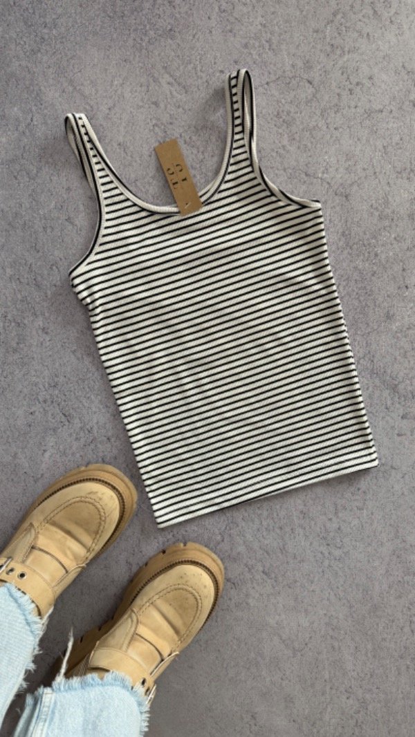 top de morley rayado, elastizado. largo a la cintura aprox.