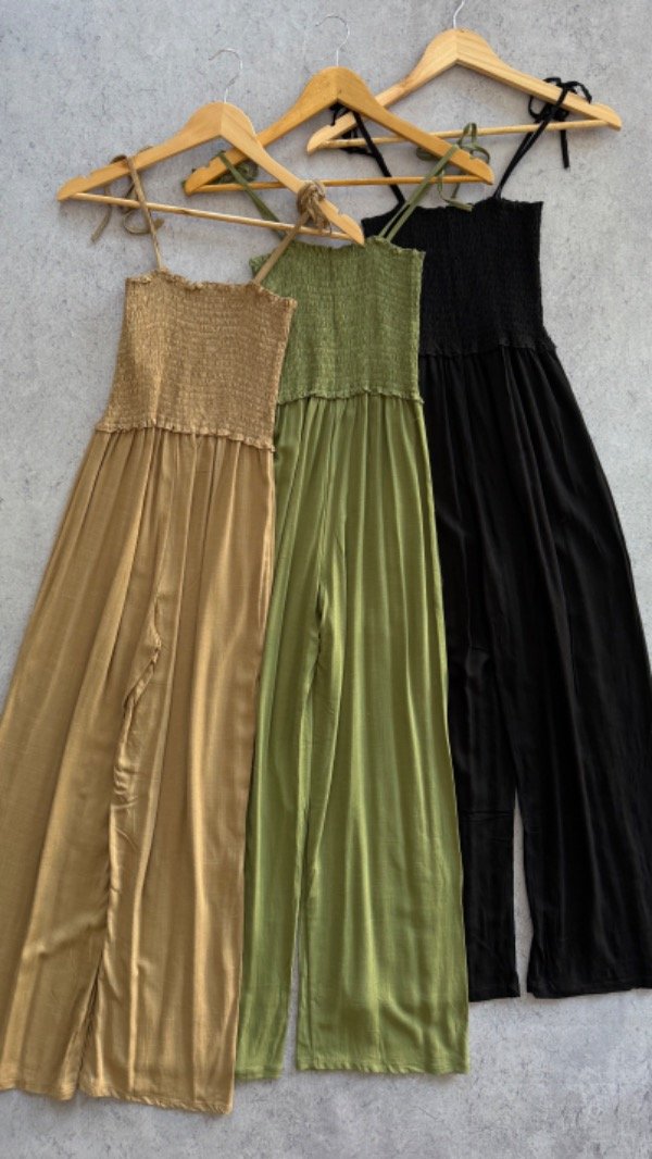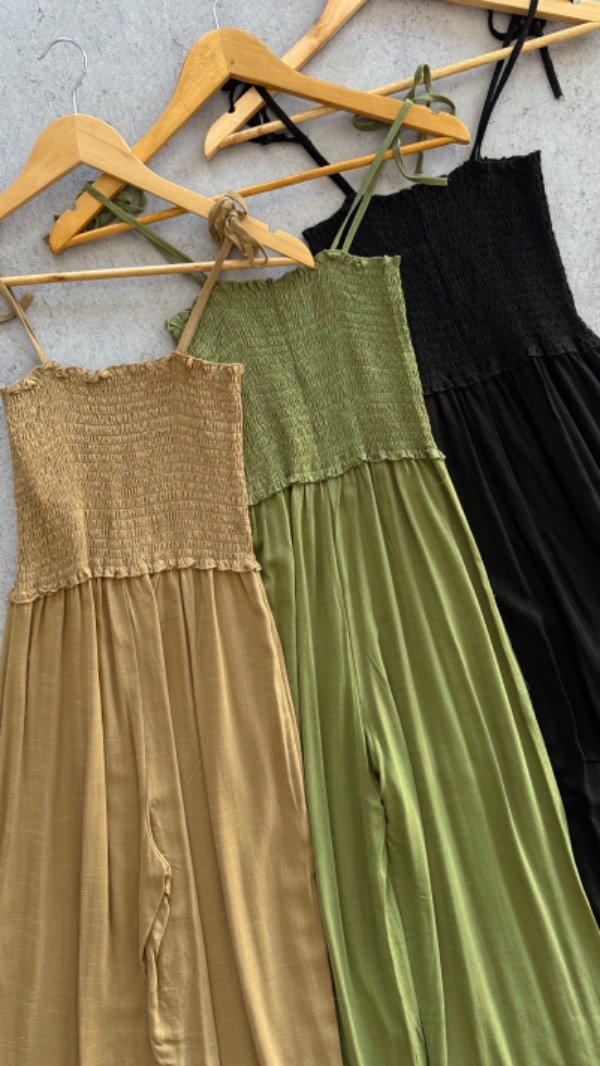 mono largo de fibrana con elastico en el busto y breteles finos. con bolsillos
