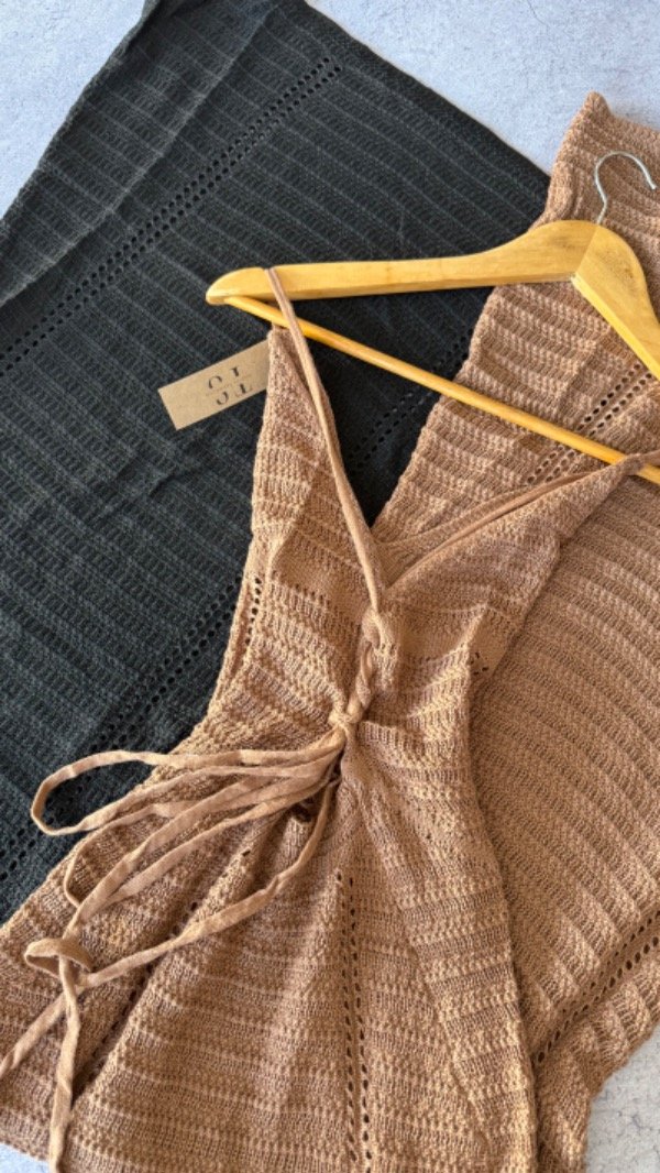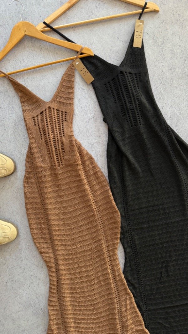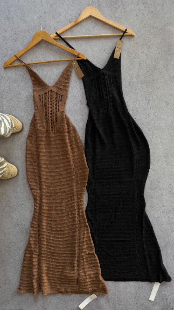 vestido largo de hilo calado, es elastizado. talle unico aprox S/M