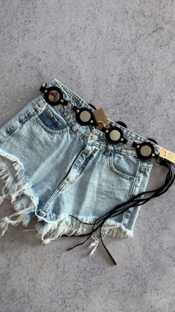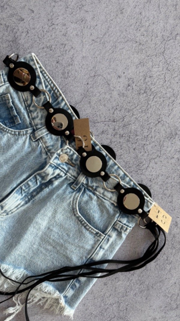 Cinto de gamuza con avios de acero. medidas: 1 mt de largo, regulable