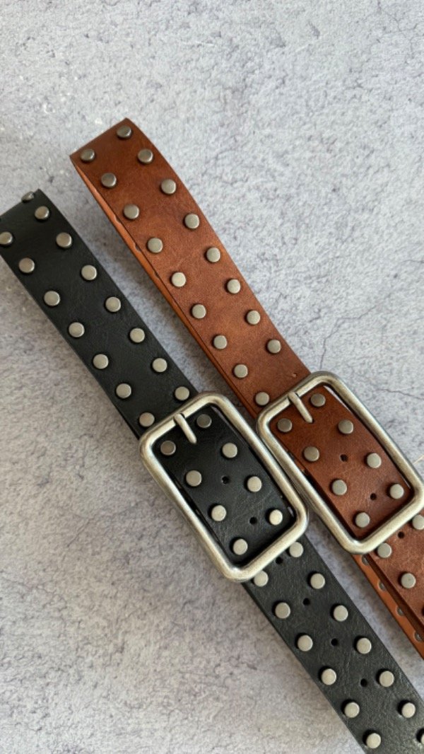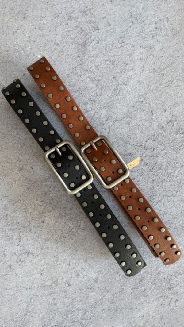 Cinto de ecocuero con tachas y hebilla plateada. se adapta de un 36 a un 42 aprox. modelo importado