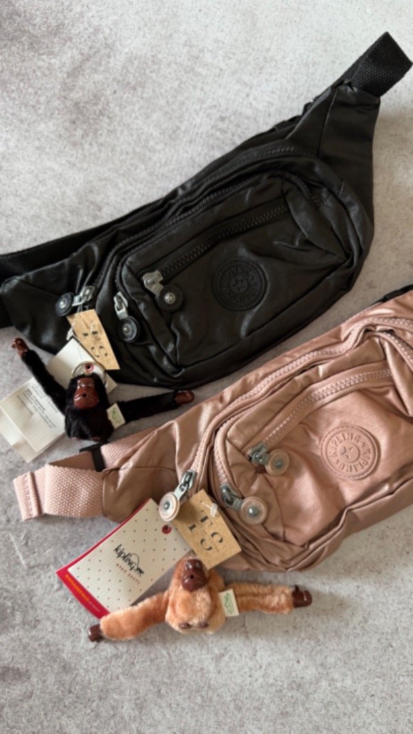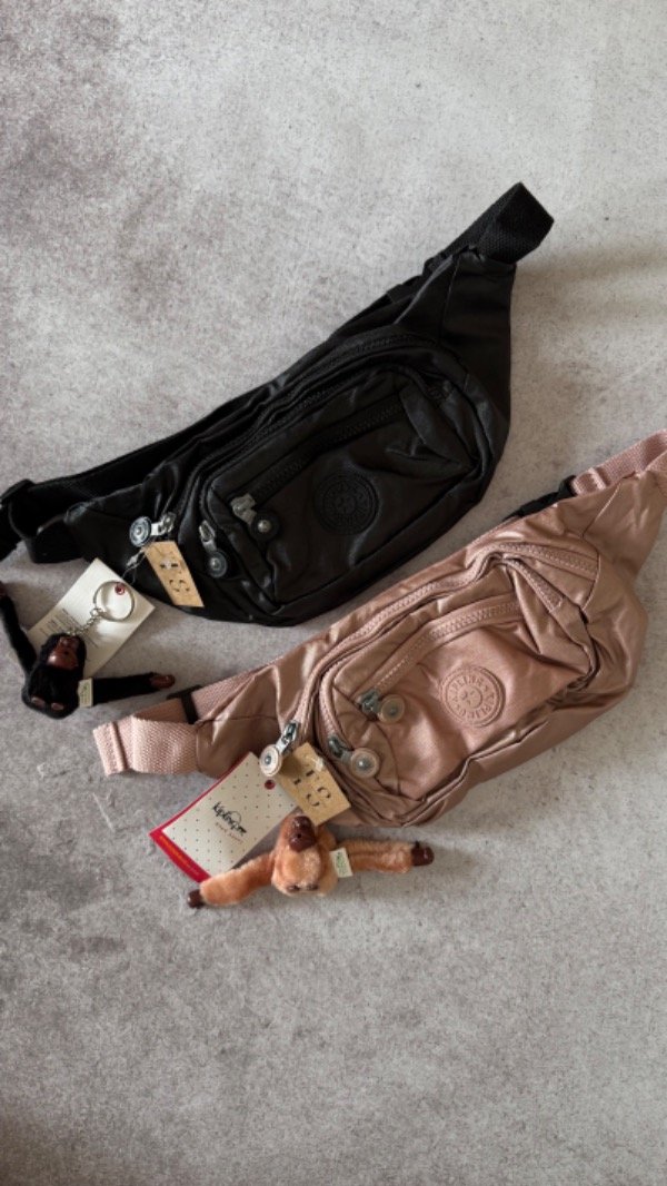 riñonera urbana con 3 compartimientos. tela tipo rompevientos. tamaño mediano. incluye llavero del monito de la marca, se puede sacar.