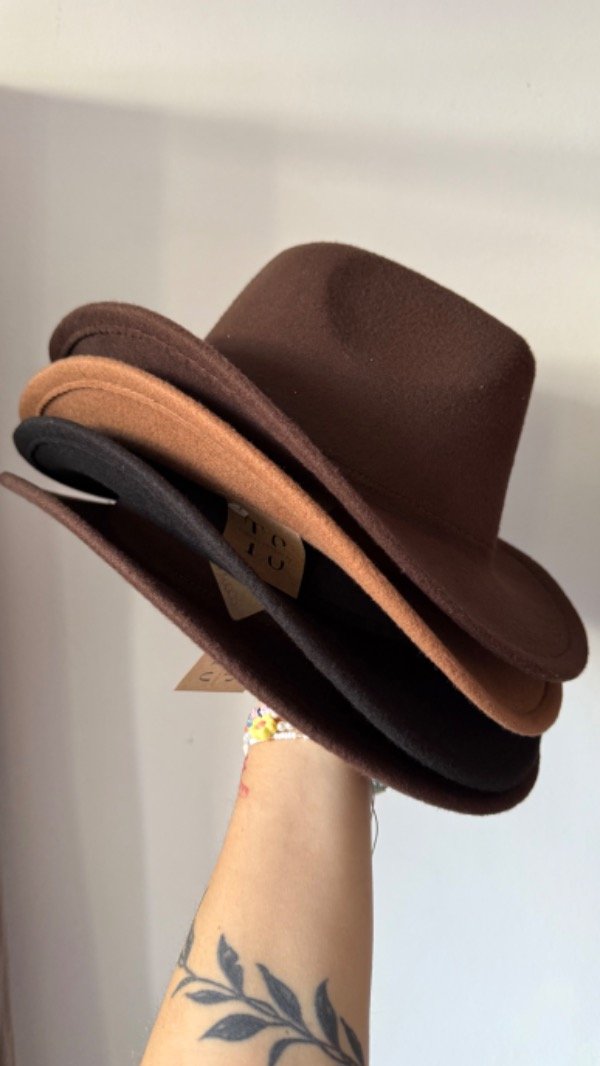 sombrero gamuzado, talle unico (son amplios), tiene para regular adentro