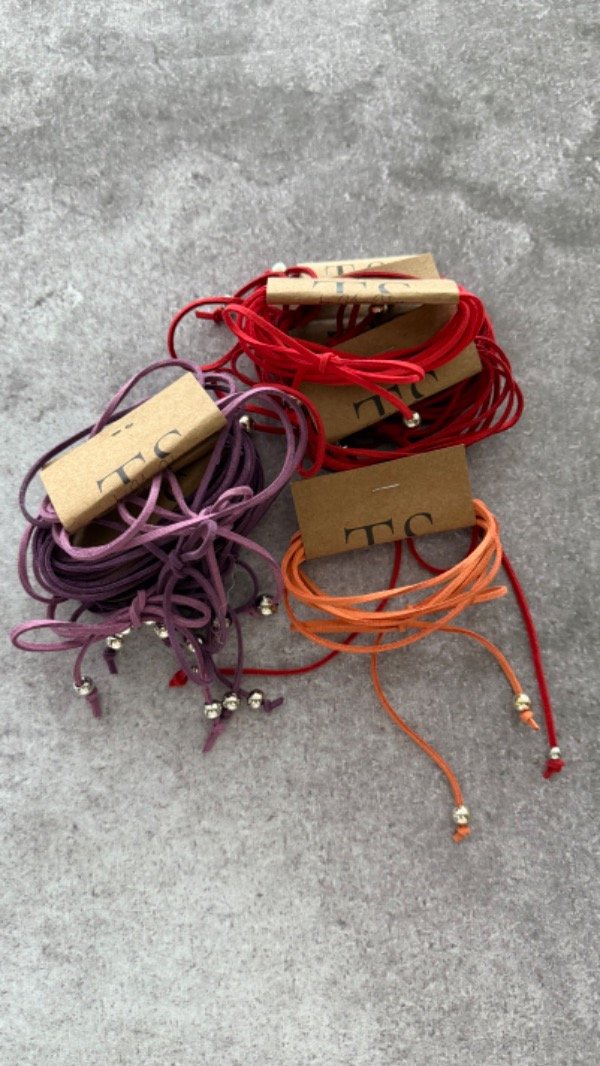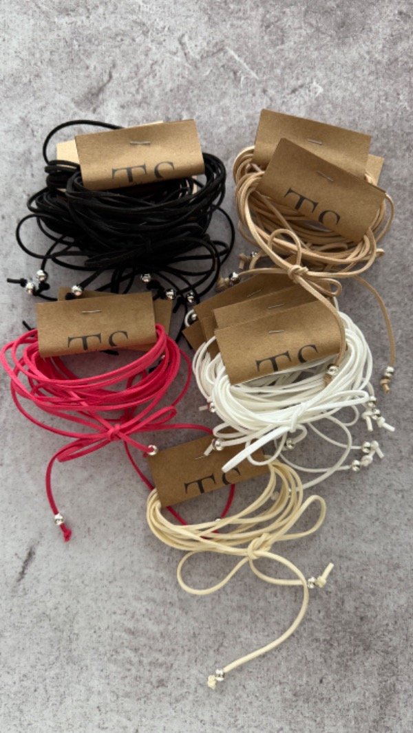 choker de gamuza con pelotitas, regulable. *los tonos pueden variar según el hilo en stock, los modelos vienen con 1 o 2 pelotillas *.