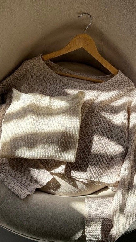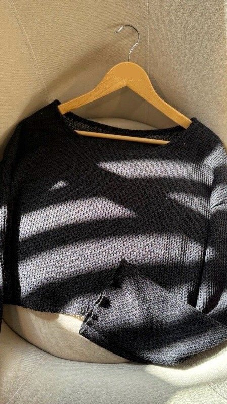 sweater ancho de hilo calado, es corto arriba de la cadera.