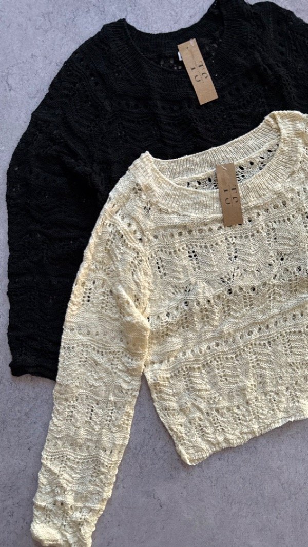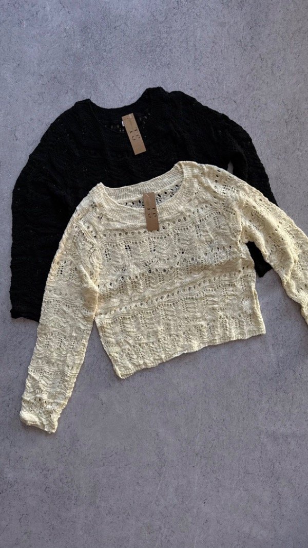 sweater de hilo crochet, caladito. modelo arriba de la cadera aprox