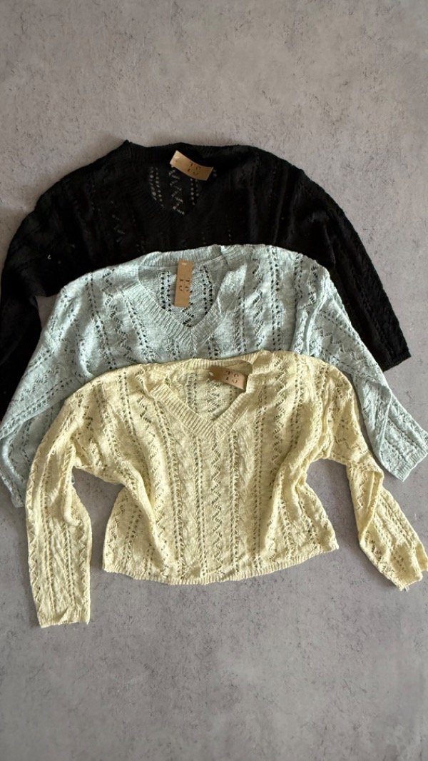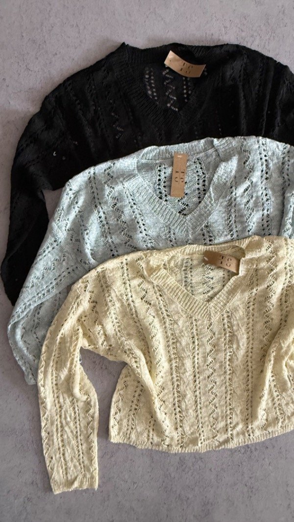 sweater de hilo crochet, caladito. modelo arriba de la cadera aprox