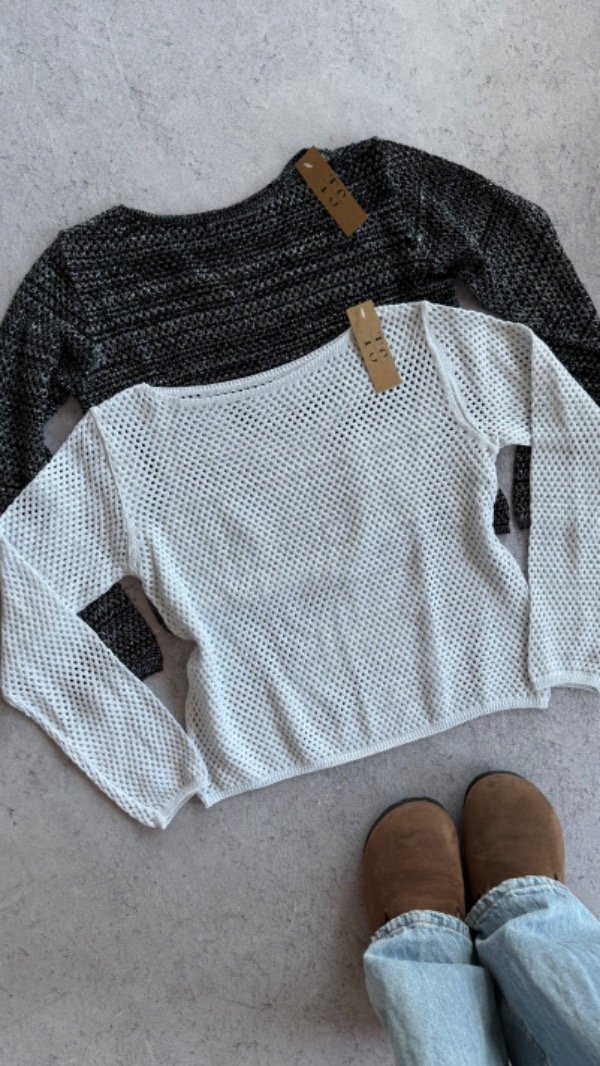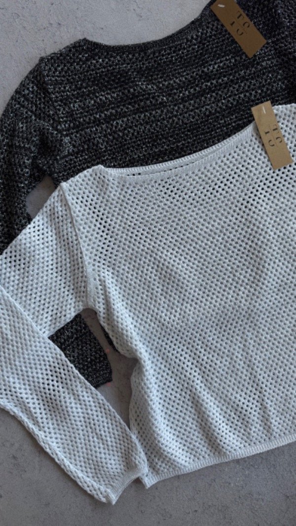 sweater de hilo crochet con lurex, calado. modelo a la cintura aprox. talle unico va para S/M