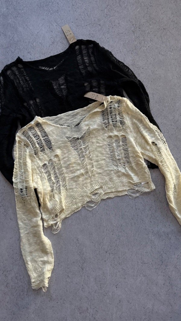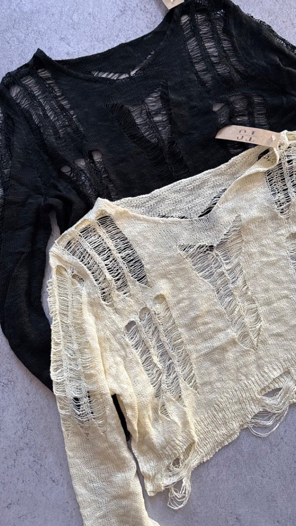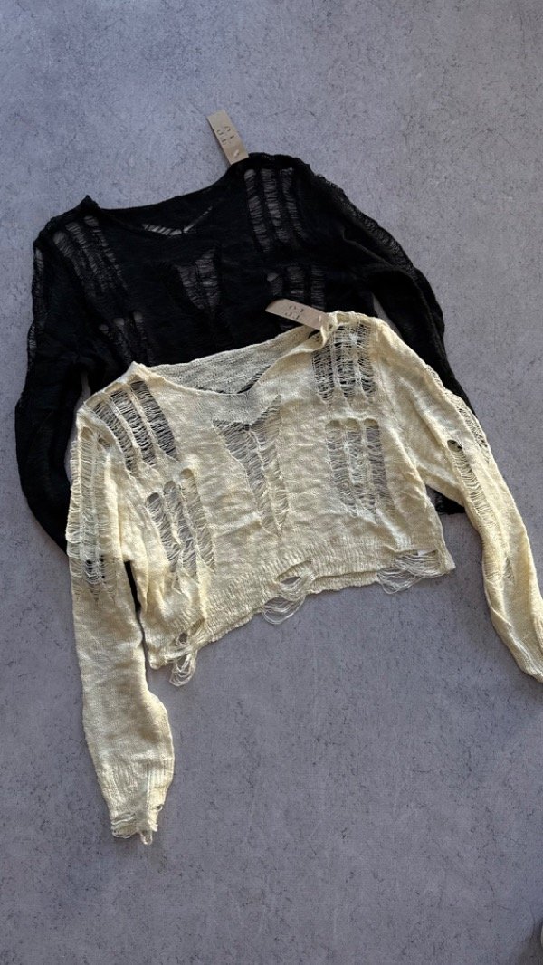sweater de hilo crochet, caladito. modelo arriba de la cadera aprox. talle unico va para S/M