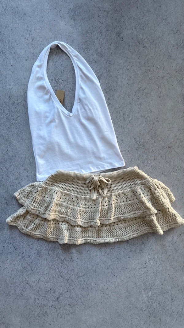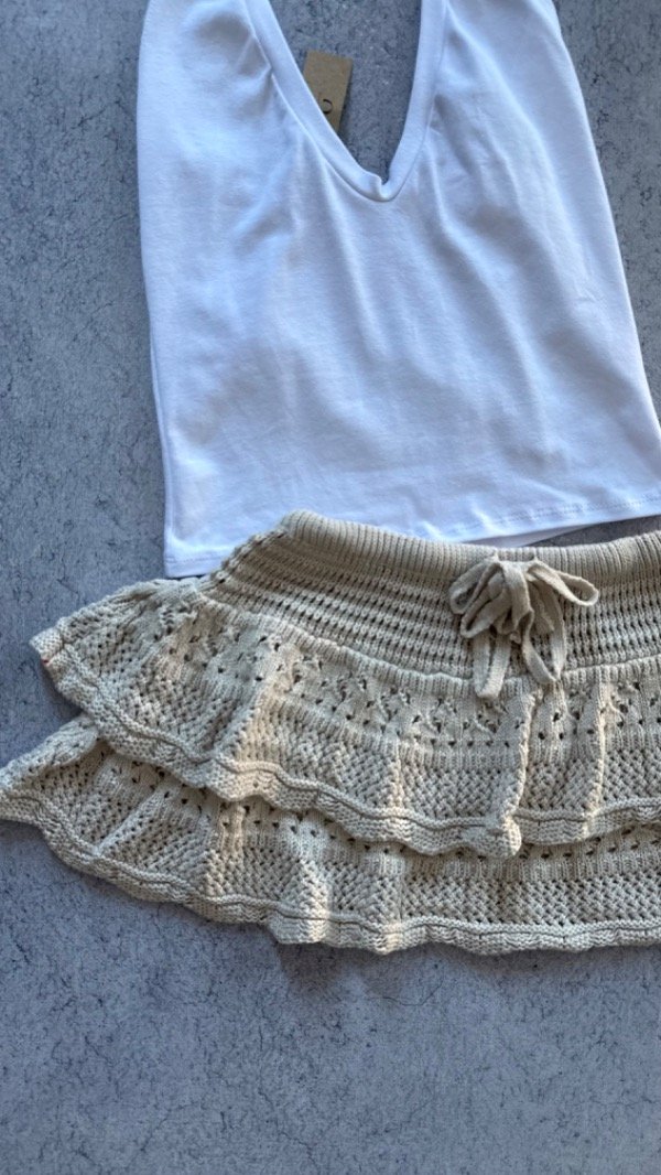 pollera de hilo tejida, con volados. tiro bajo. talle unico, va para XS/S