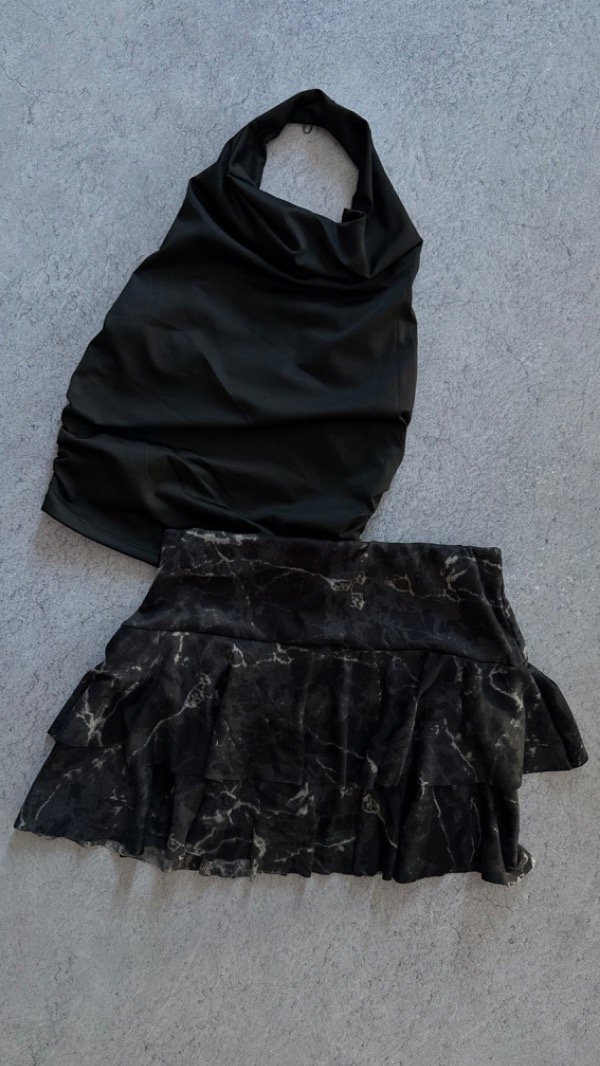 mini de morley estampada con volados. tiro medio/alto y elastizada. talle unico va para S/M