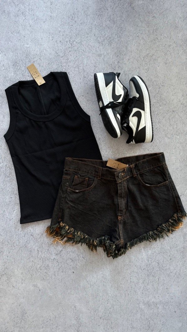 short de jean tiro alto, rigido. corte mom desflecado.