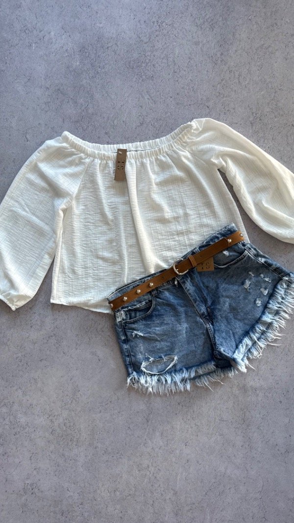 short de jean tiro alto, rigido. corte mom desflecado. el talle viene chico