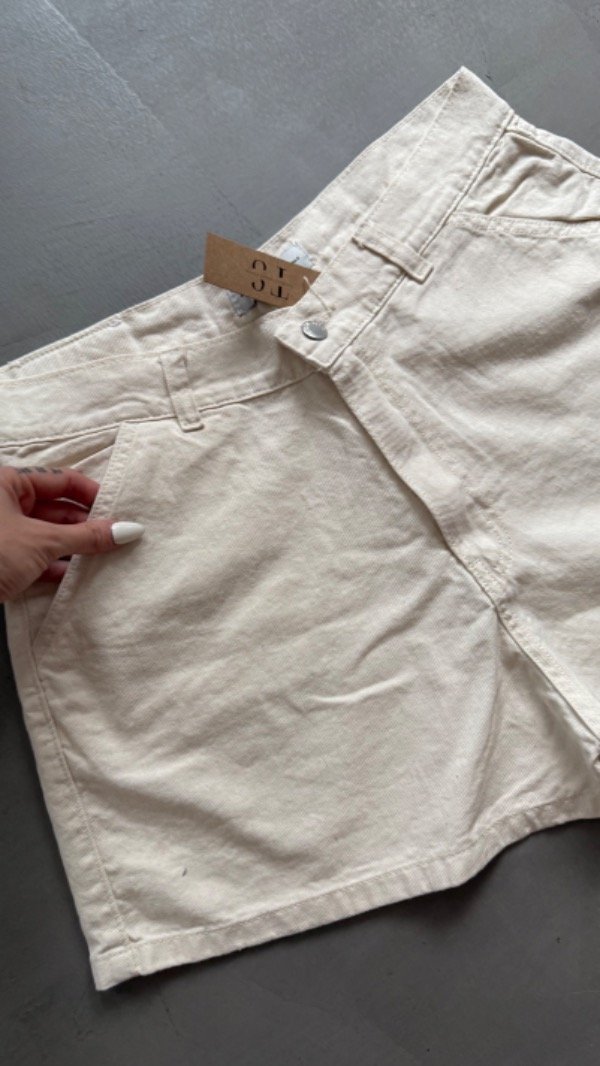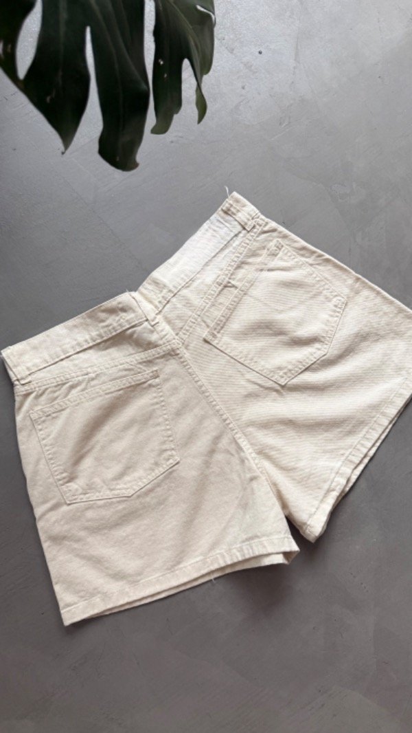 short de jean crudo tiro alto, rigido. los talles tiran a chicos.