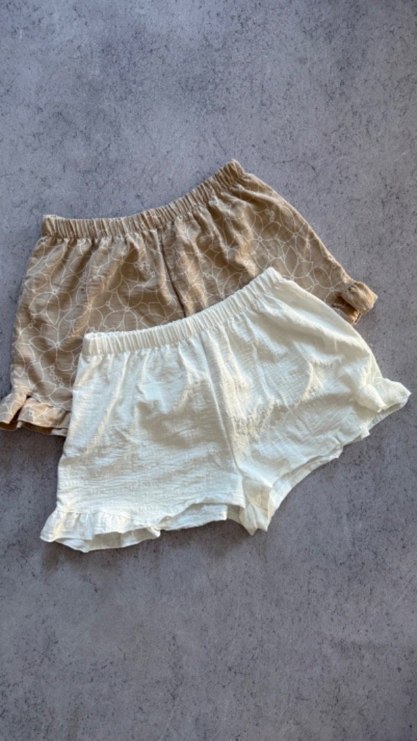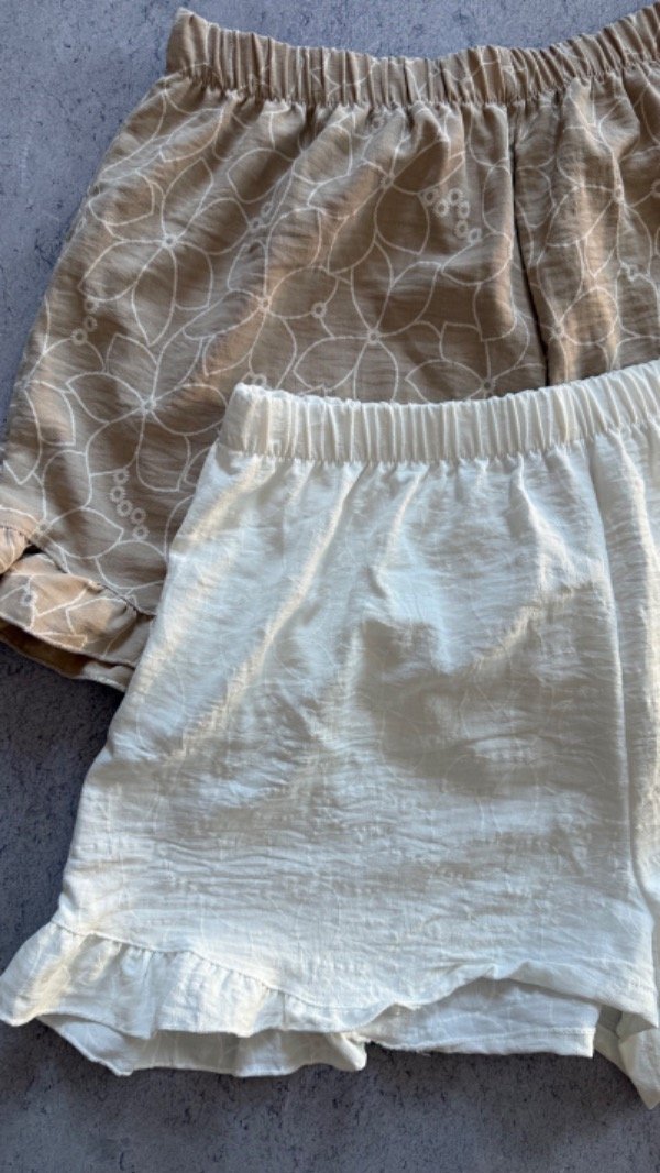 short veraniego de lino con bordado, modelo tiro alto. cintura elastizada
