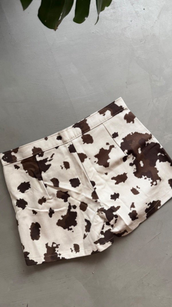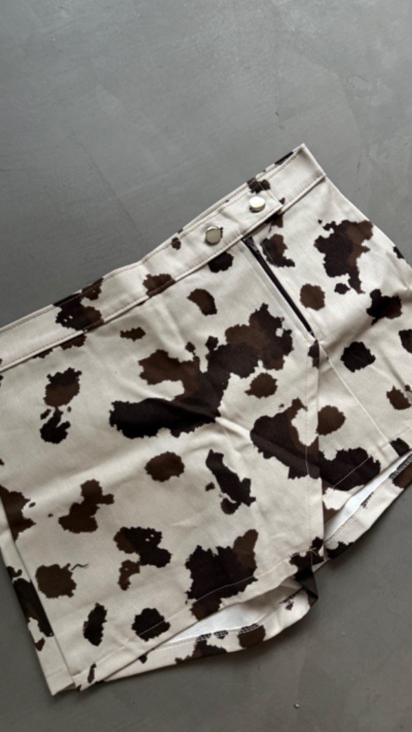 short pollera con solapa, de gabardina estampada. tiro alto, rigido no cede.