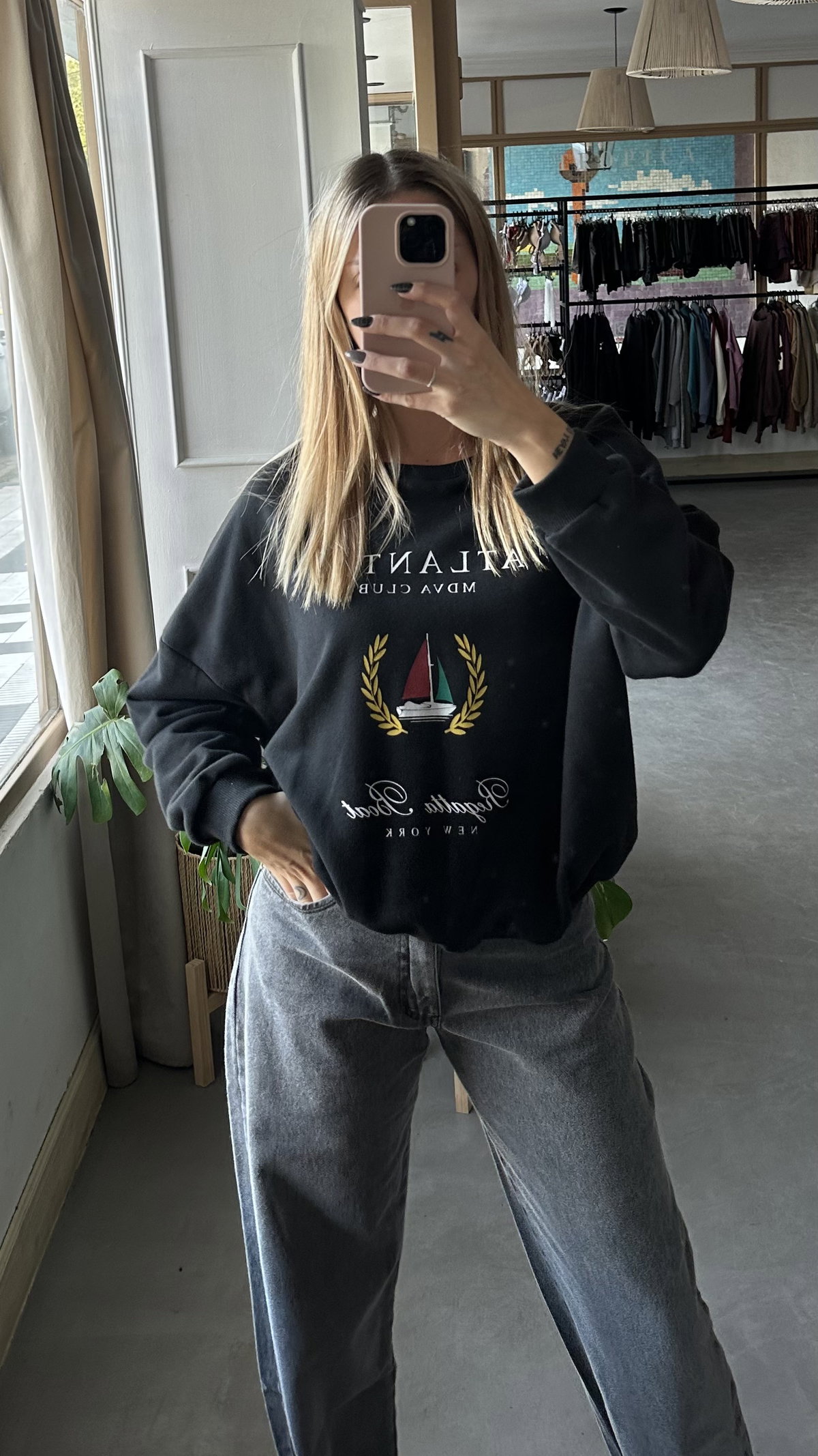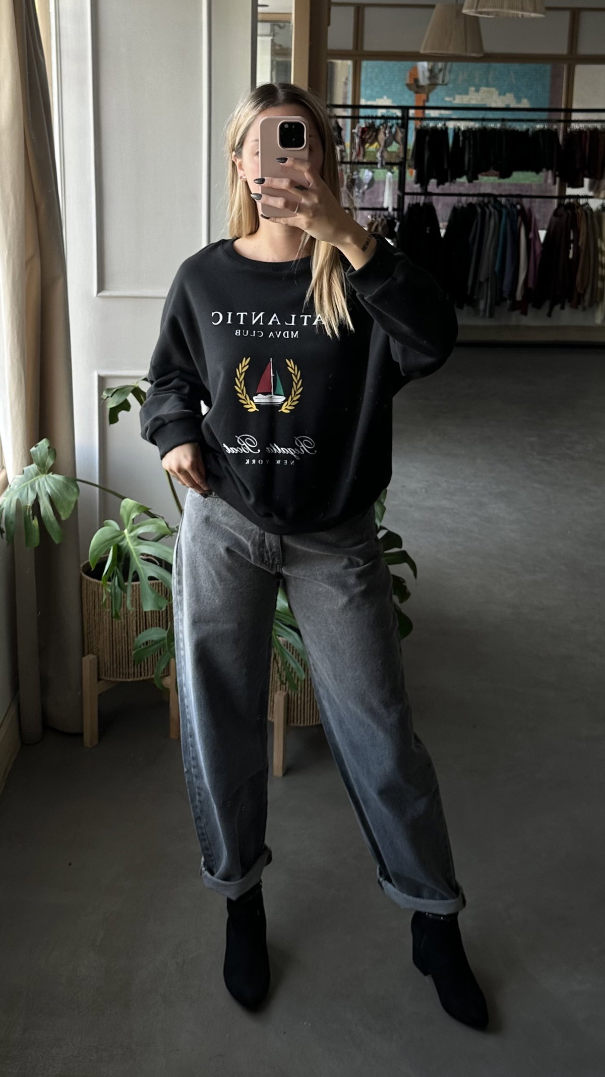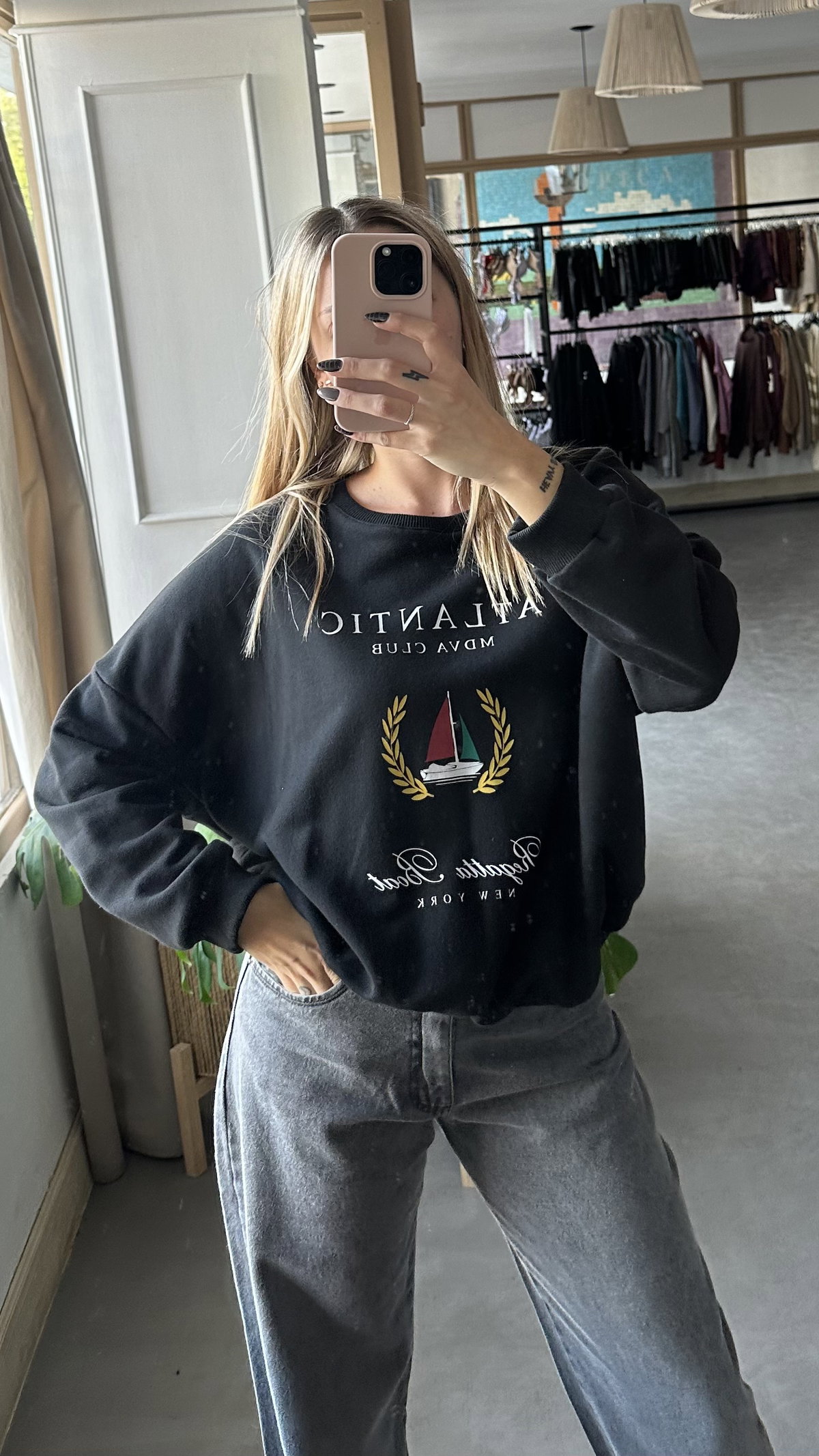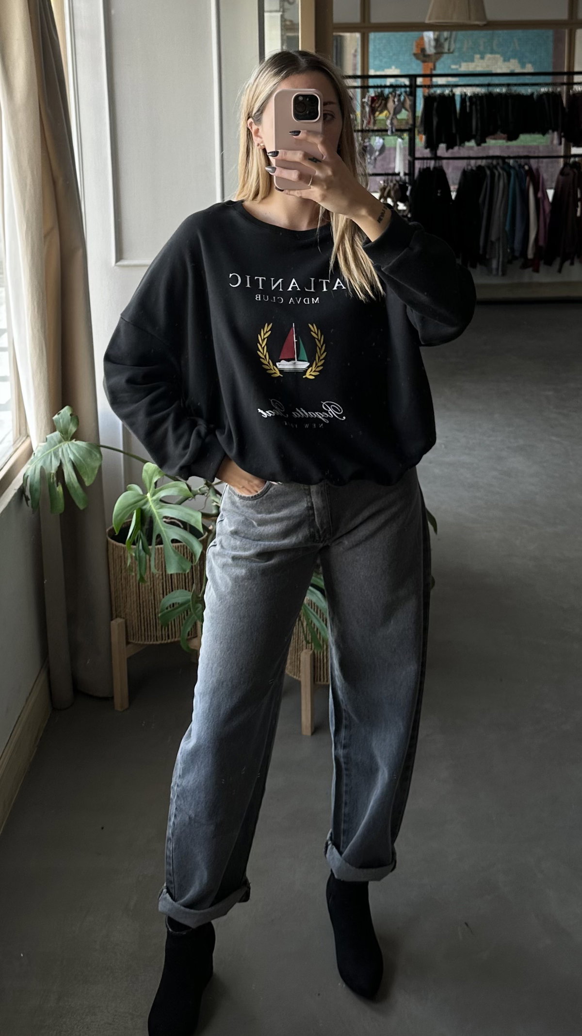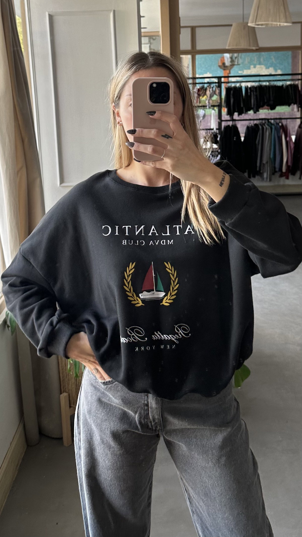 Buzo de algodon rustico con estampa, talle unico, va hasta XL/2XL aprox. modelo oversize con hombro caido.
