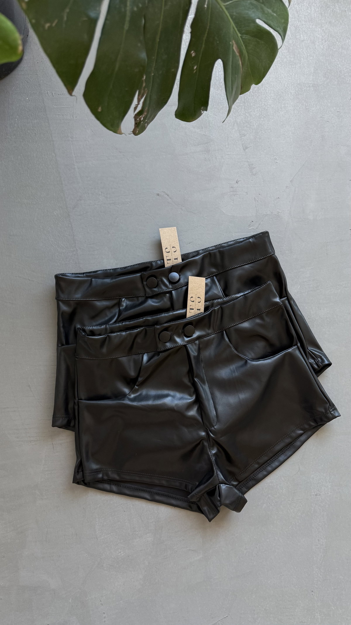 short de cuerina con doble botón. modelo tiro medio, elastizado.