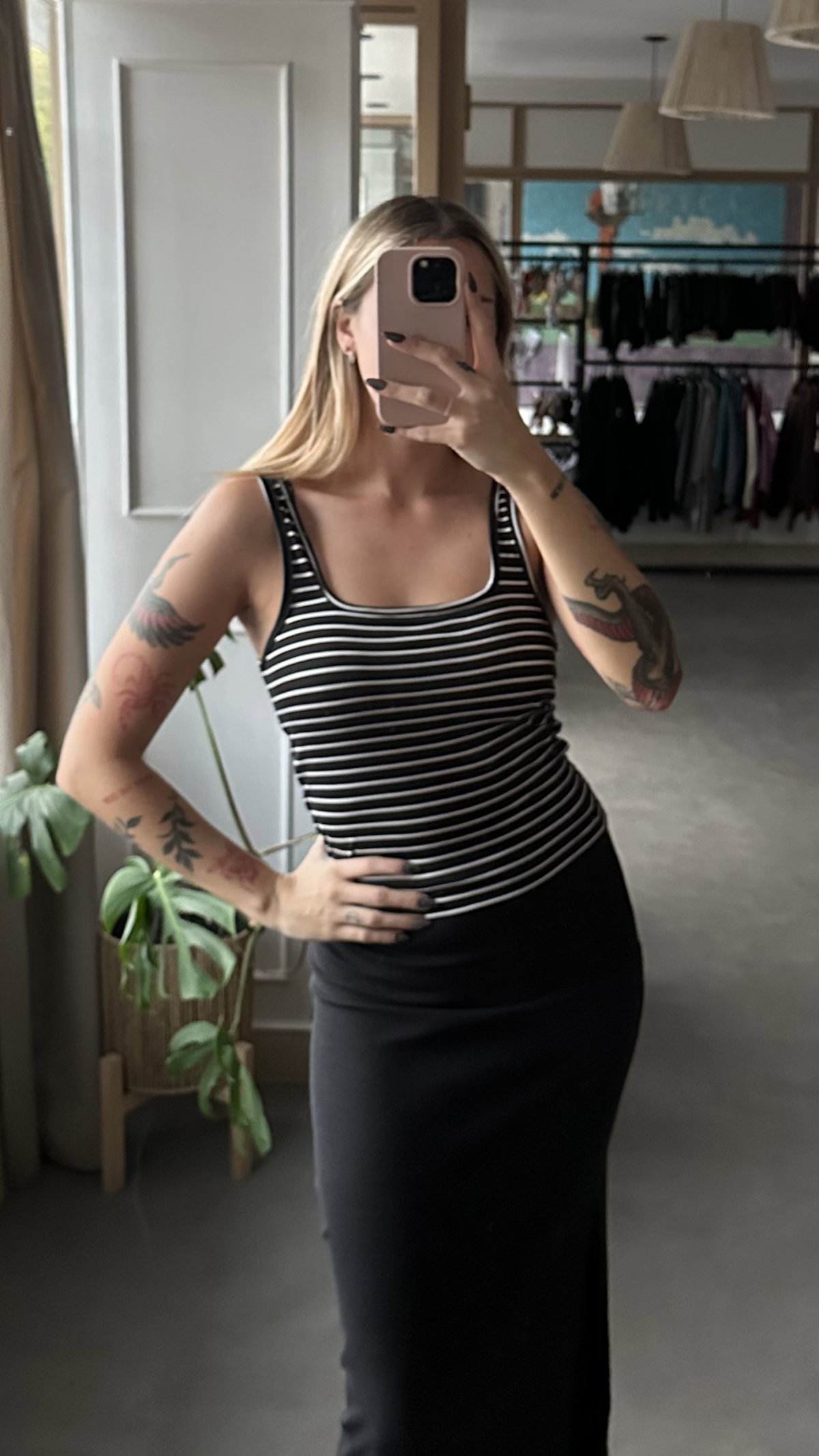 musculosa rayada de modal soft. corta tipo top. elastizada, queda arriba de la cadera.