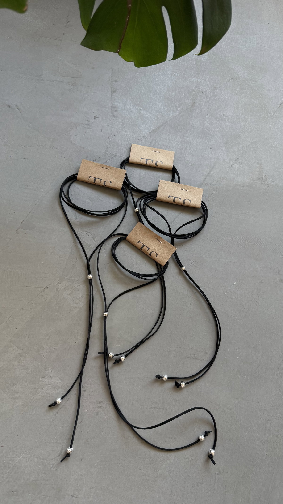 collar de gamuza con pelotitas. largo regulable. producto