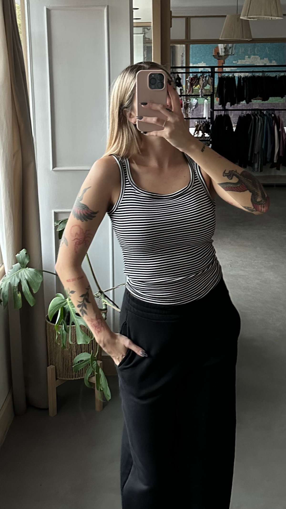 top de morley con escote cuadrado. largo arriba de la cadera, es elastizado.