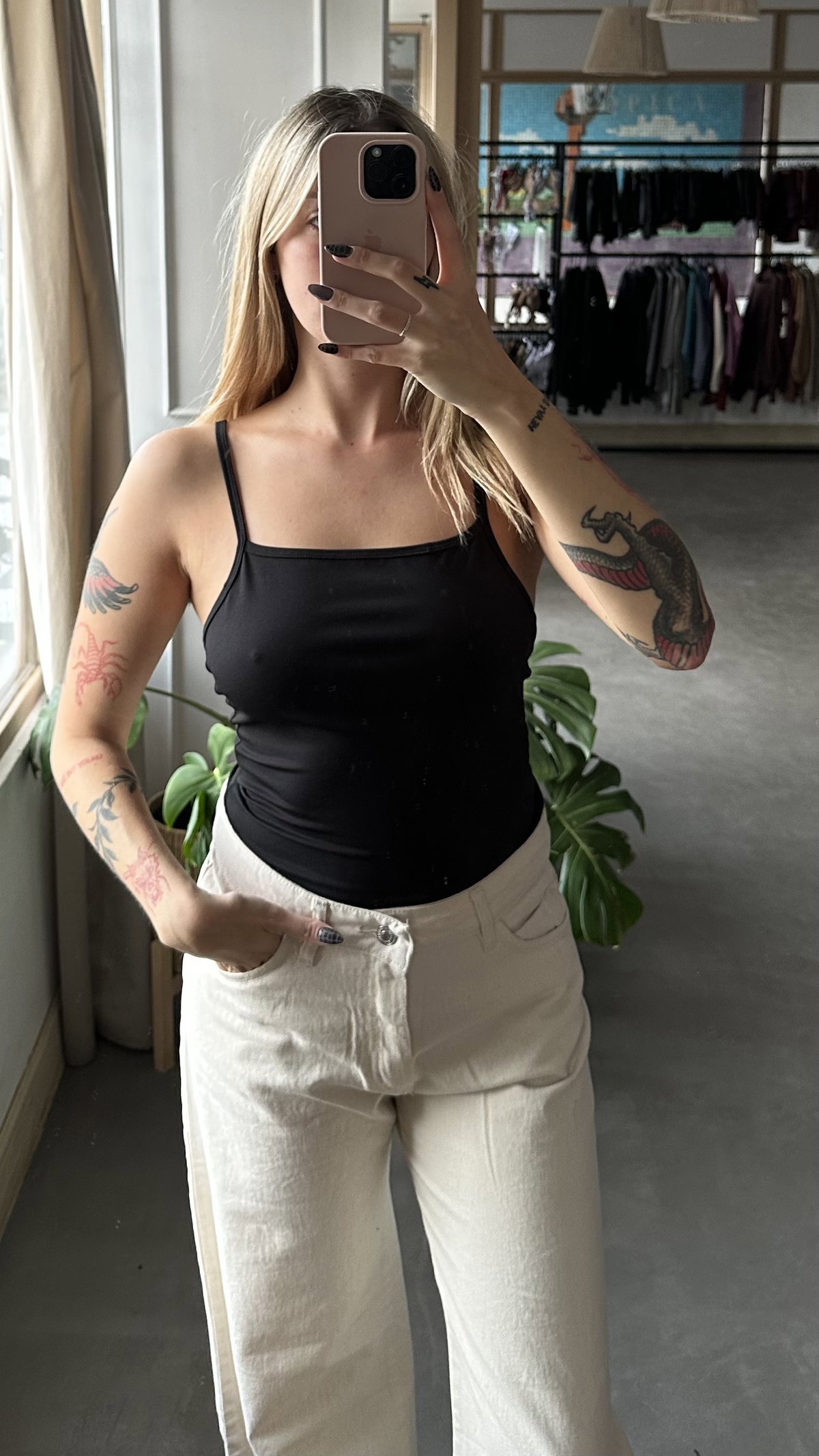 Body de morley ribb con breteles finos, es elastizado. trae ganchitos abajo.