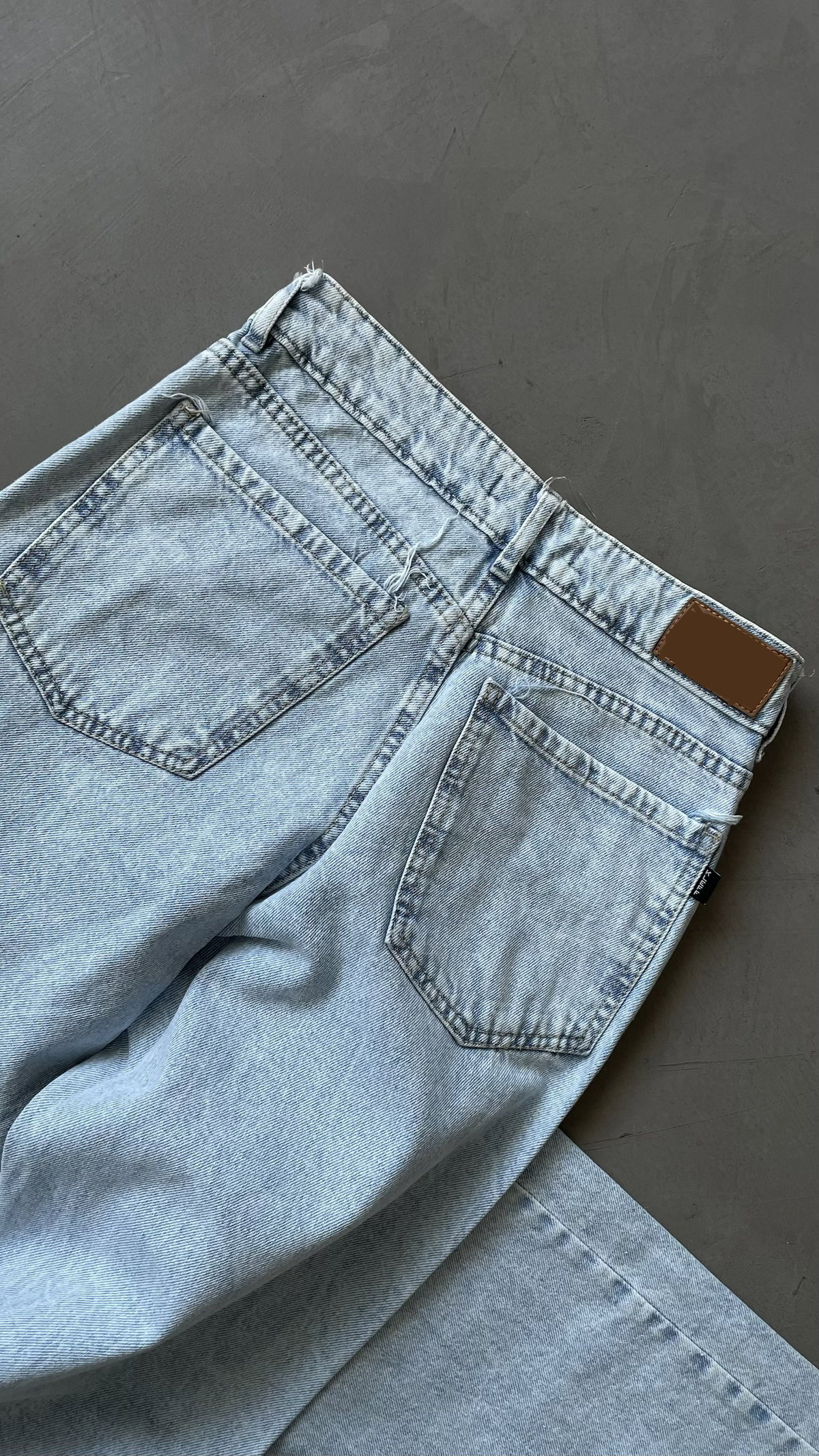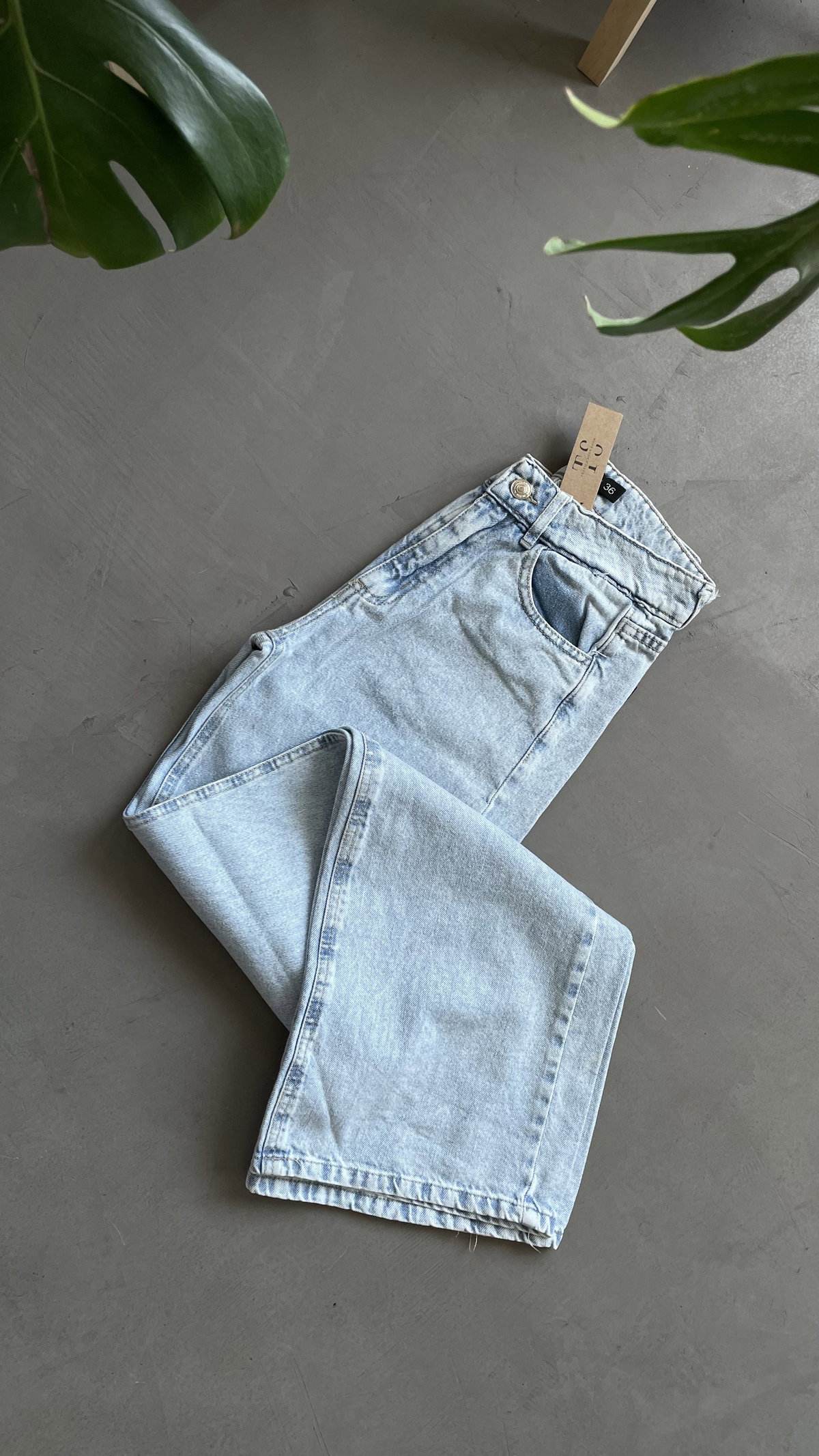 Wide leg celeste claro. ancho, tiro medio. rigido.