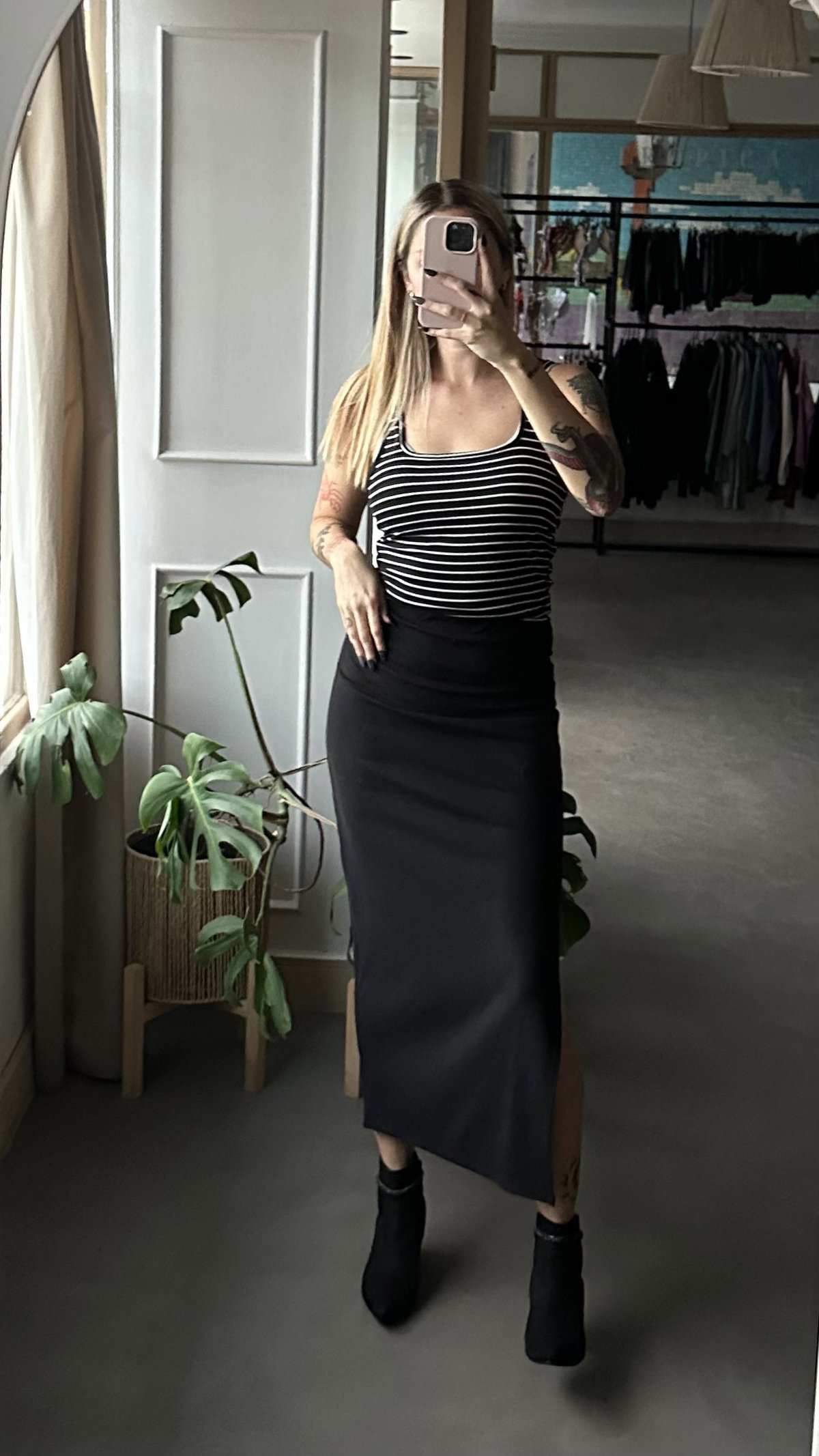 Pollera larga de morley, con cintura elastizada. tajo lateral, largo 3/4. talle unico, va para