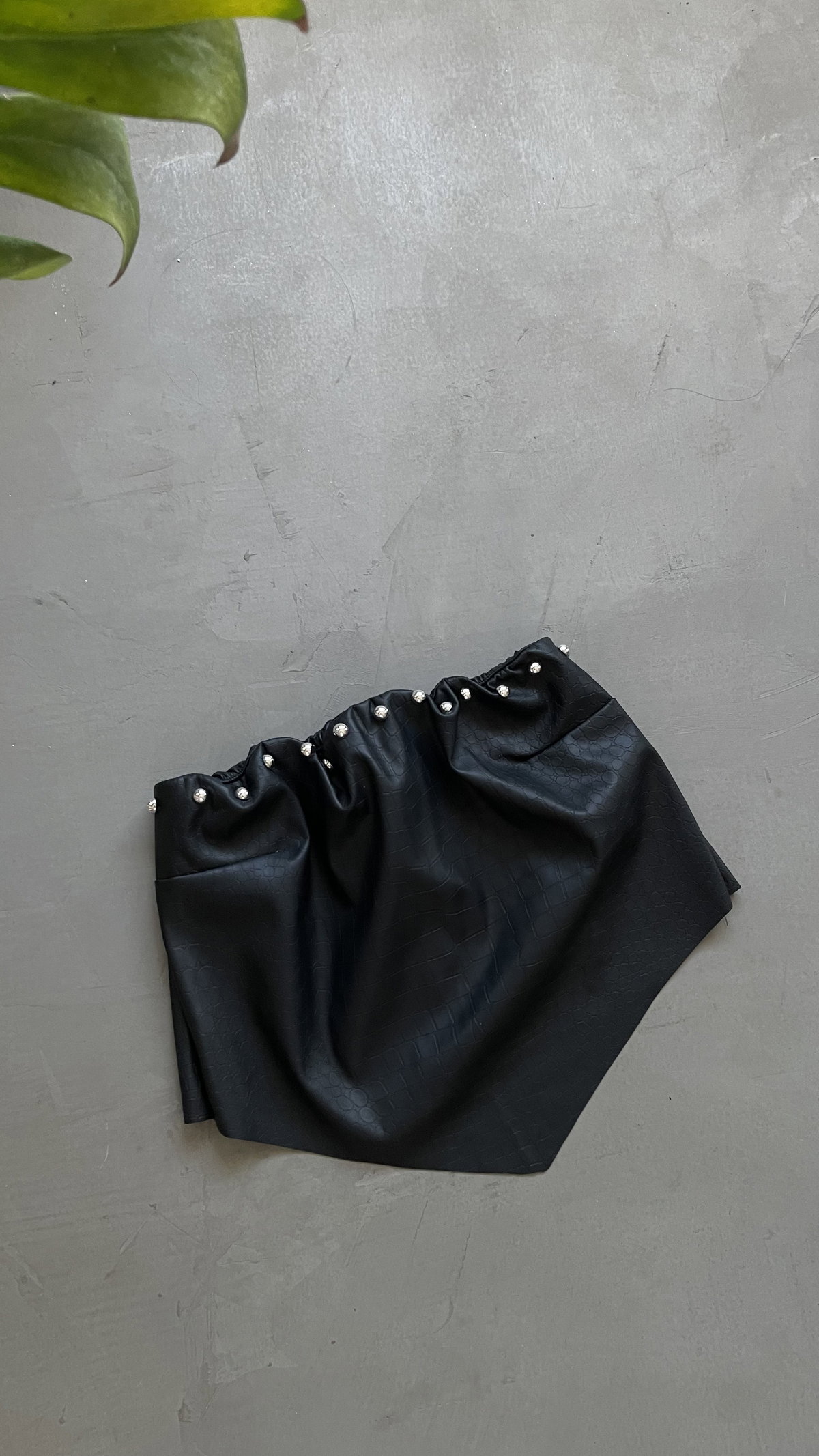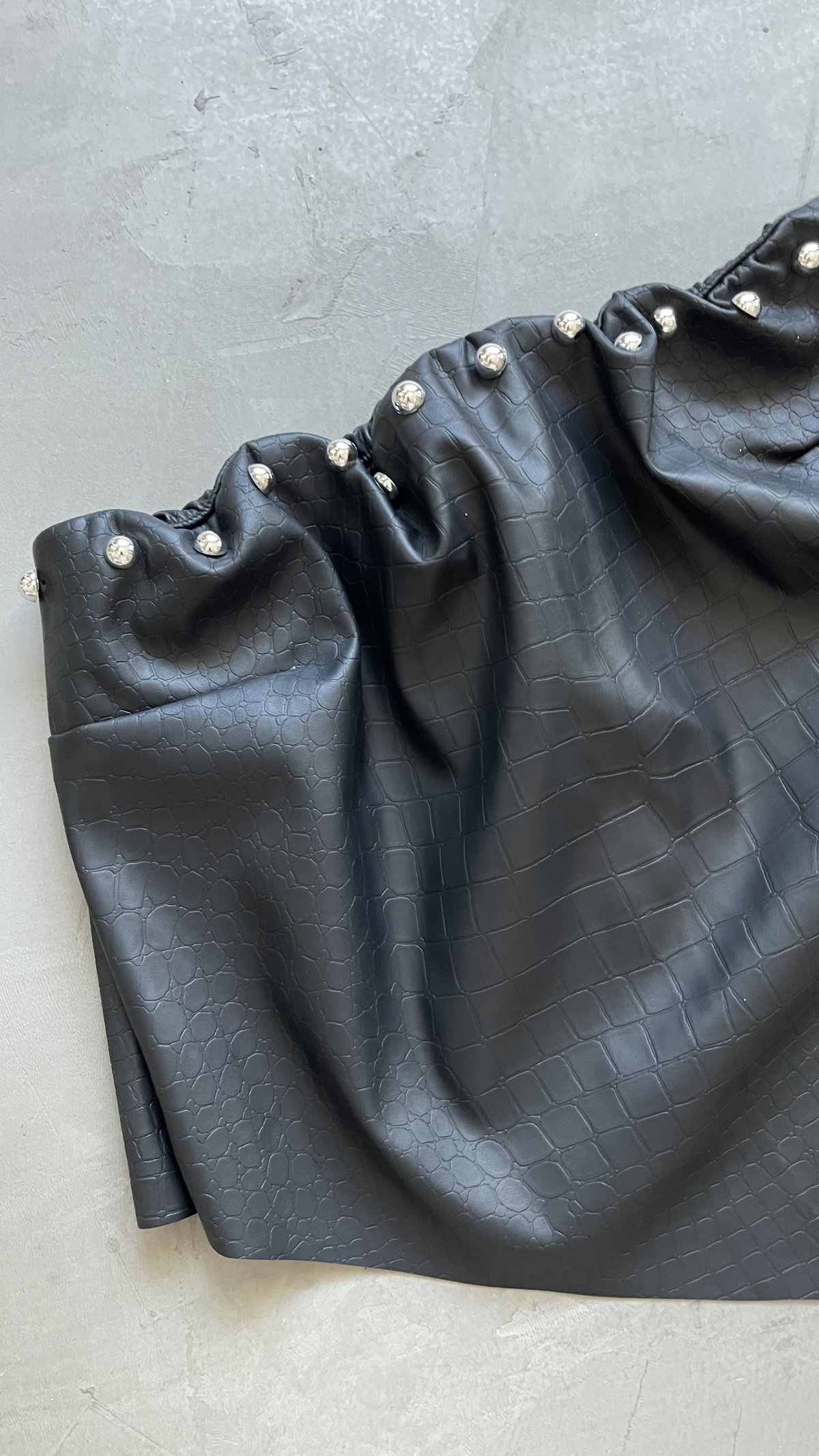 top de cruerina croco, con tachas. strapless, trae elástico