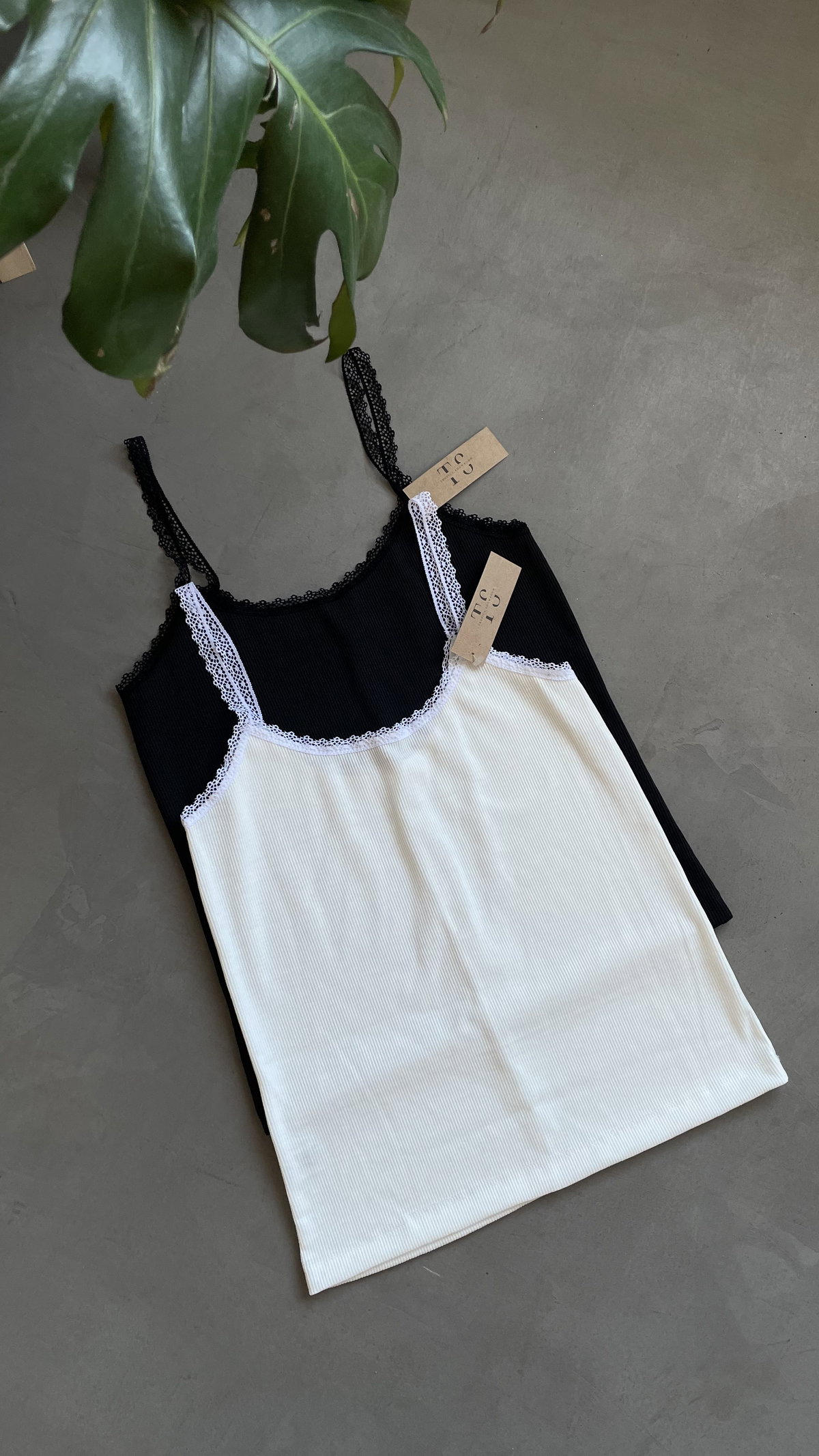 Musculosa de morley con detalle de puntilla. elastizada, larga arriba de la cadera