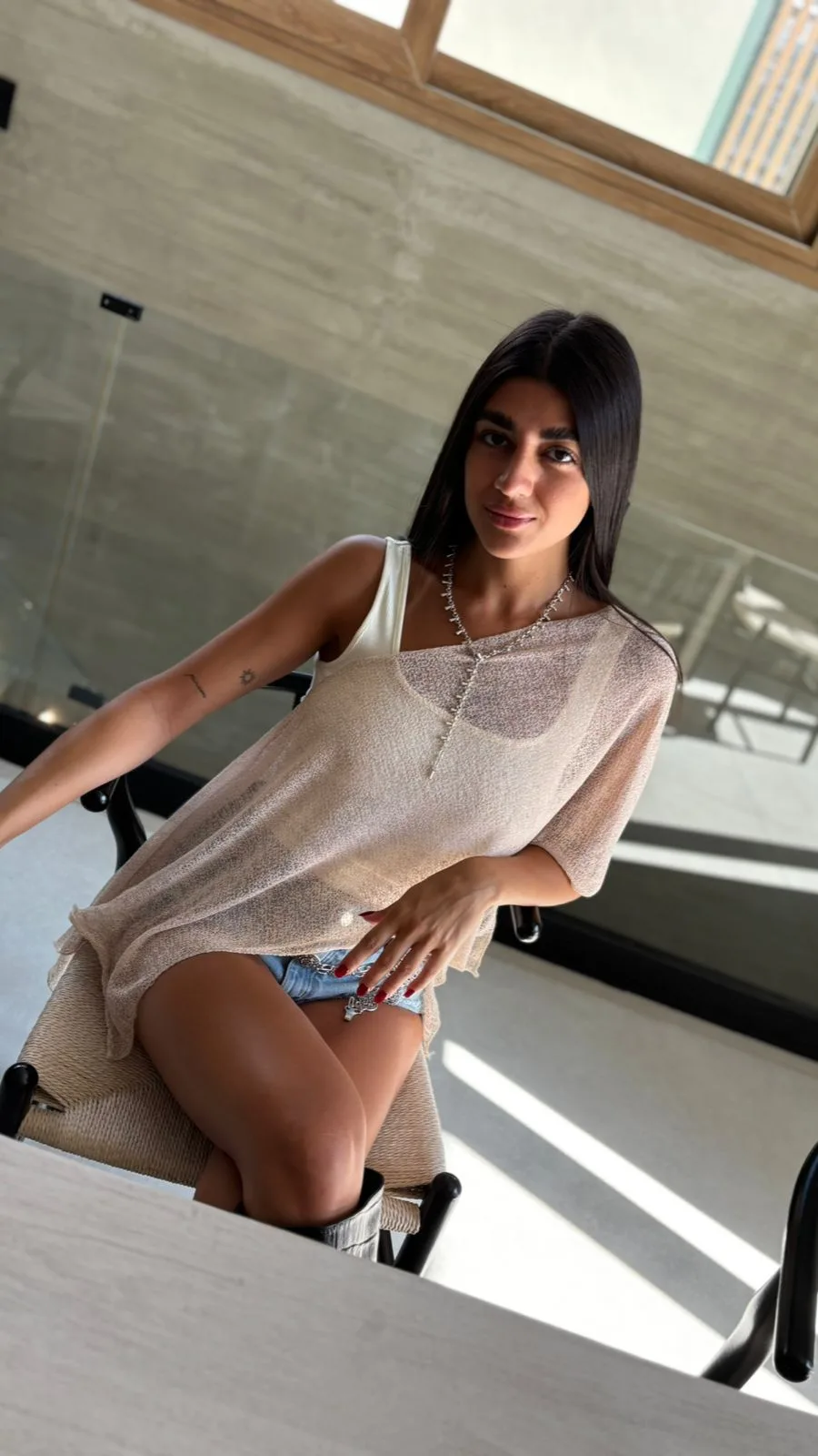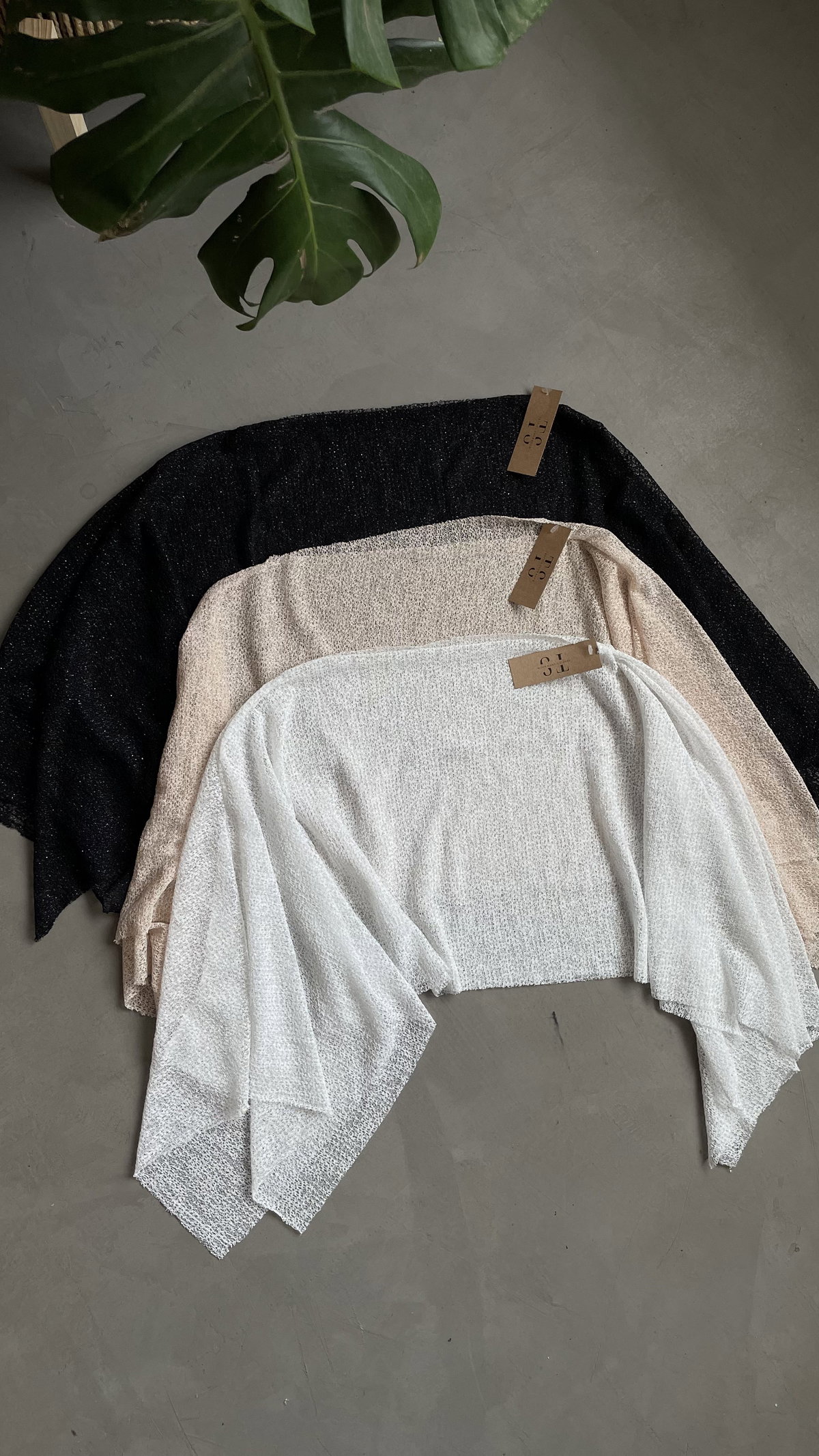 top de encaje y lurex, tipo "poncho". elastizado, talle unico, se adapta hasta un L/XL aproximadamente.