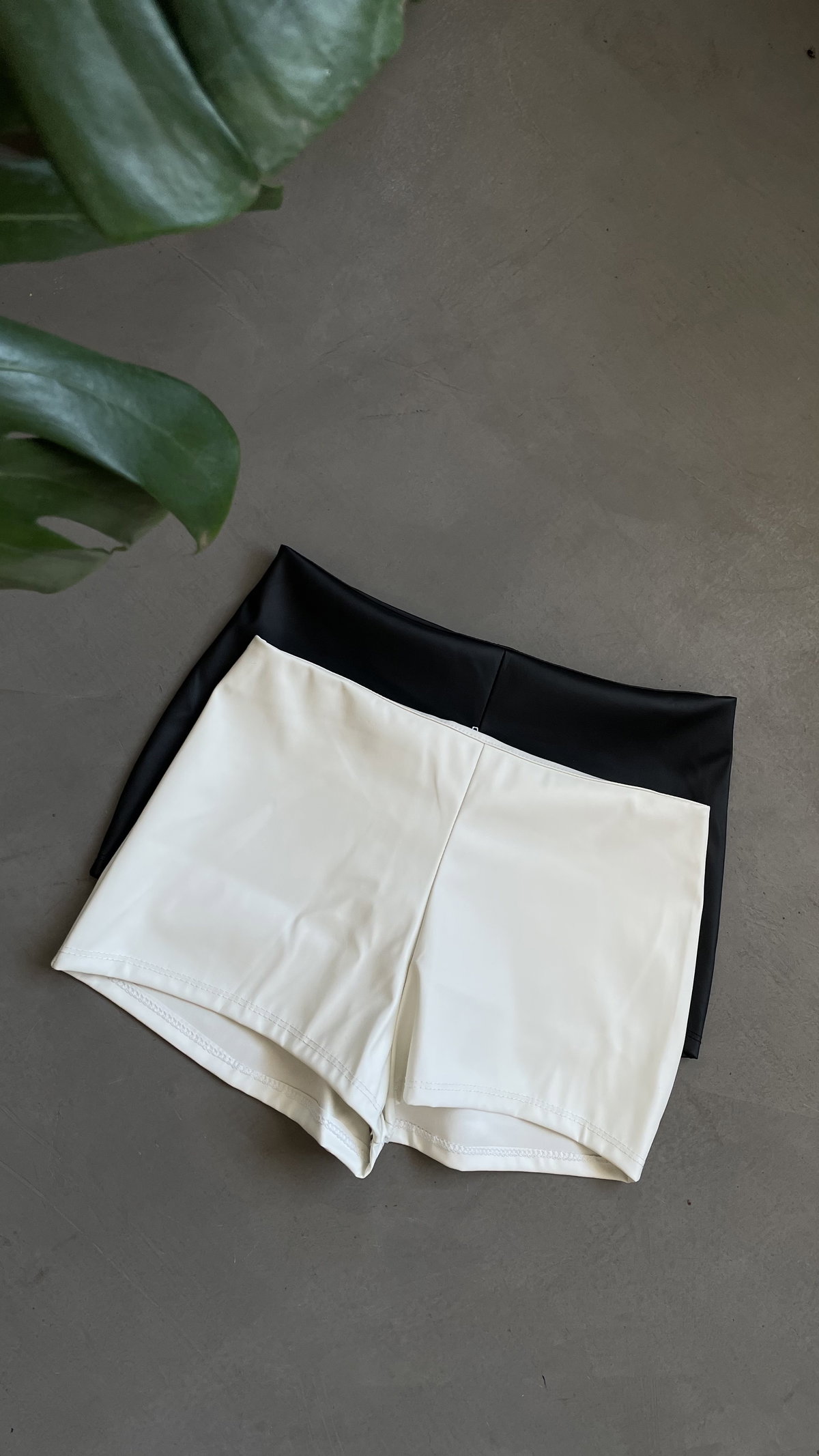 short tiro bajo de cuerina con cierre trasero. son elastizados.
