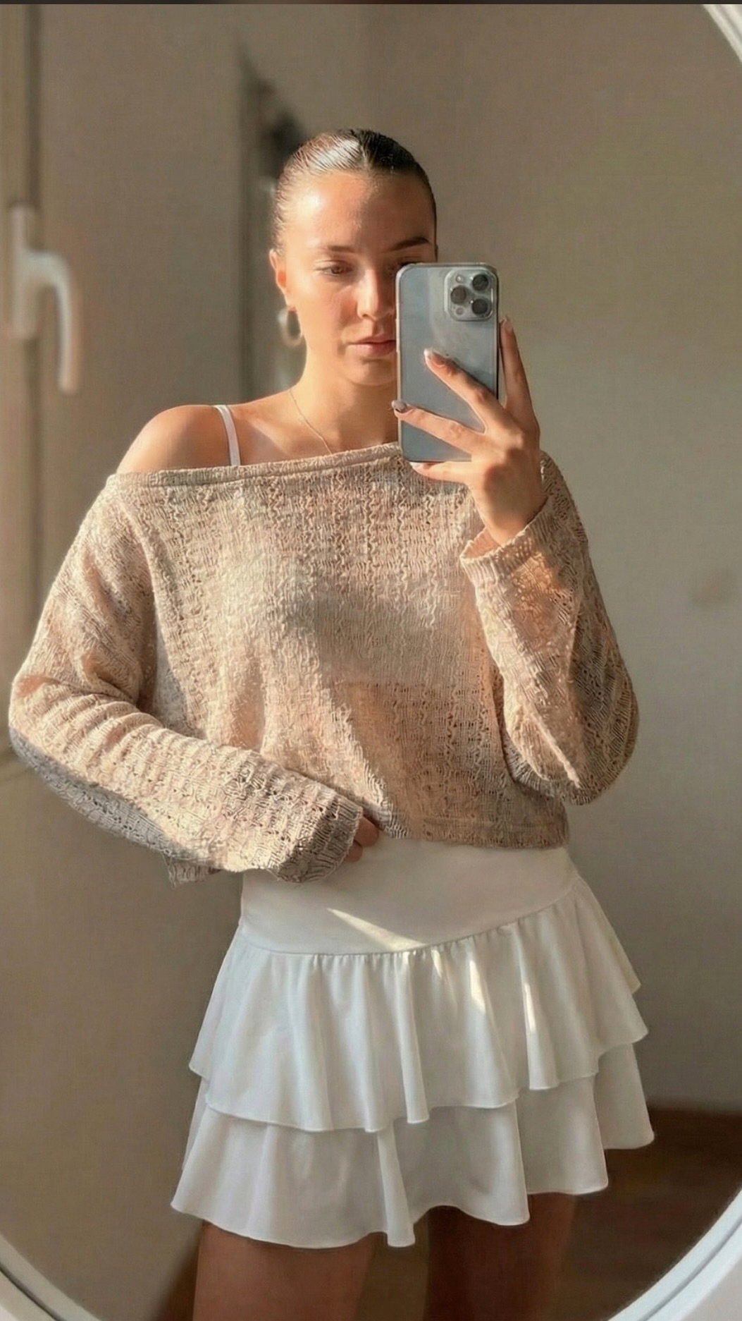 sweater/bucito de hilo, caladito. modelo corto abajo de la cintura, talle unico, va para S/M.