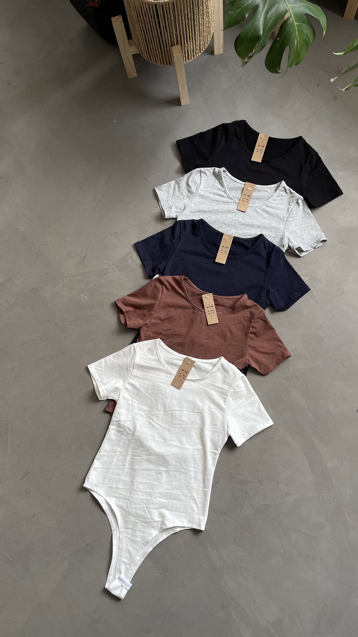 Body de algodón con lycra, manga corta. es elastizado y tiene ganchitos. talle unico, va para