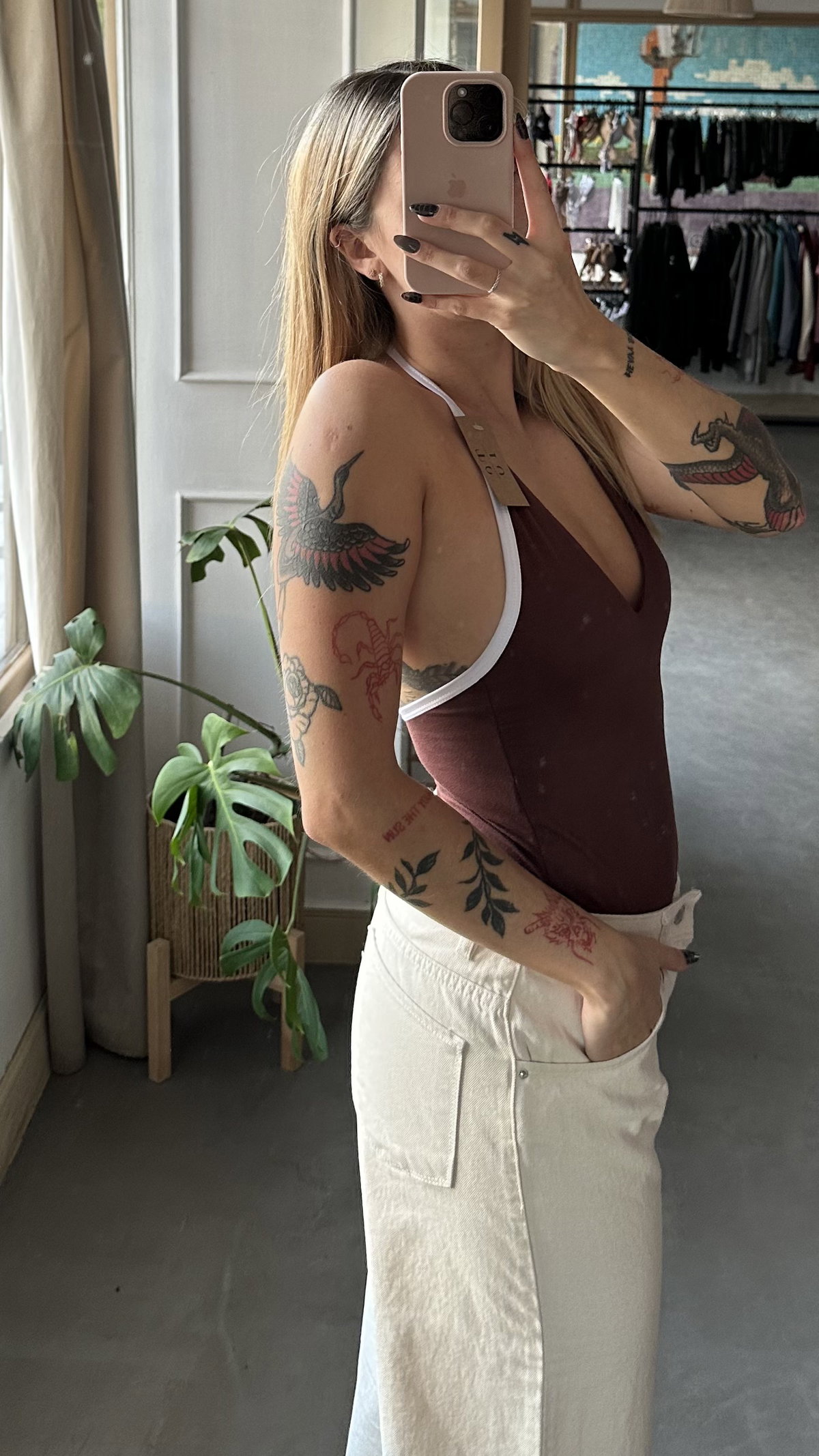 Body de morley ribb combinado, espalda descubierta. es elastizado y tiene ganchitos. talle unico, va para S.