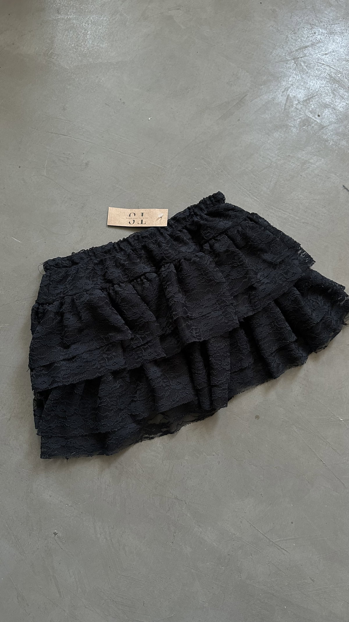 mini de encaje, con volados. tro medio/bajo. no trae forro. talle unico va para