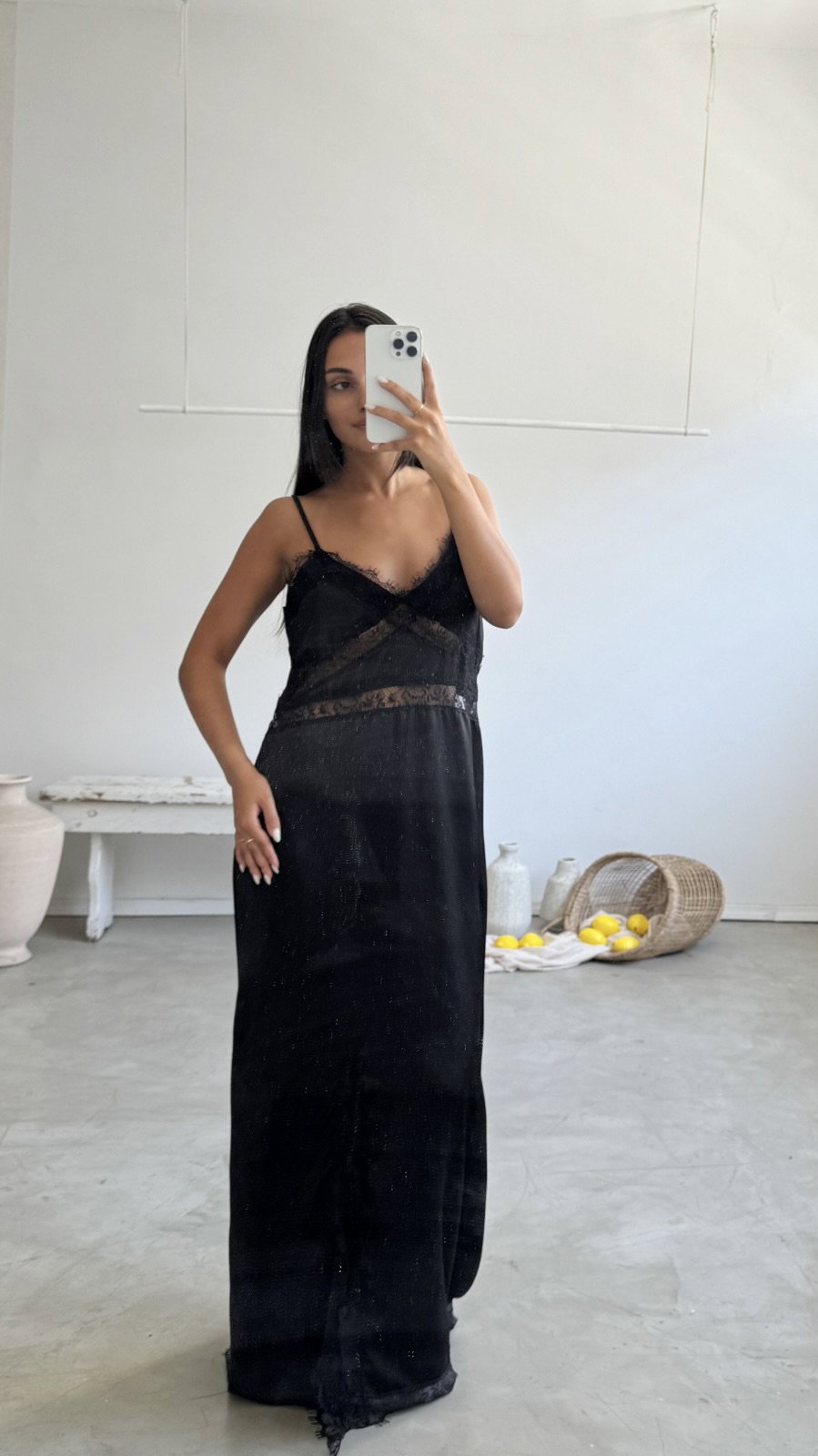 vestido largo de seda, con encaje. talle unico, va para