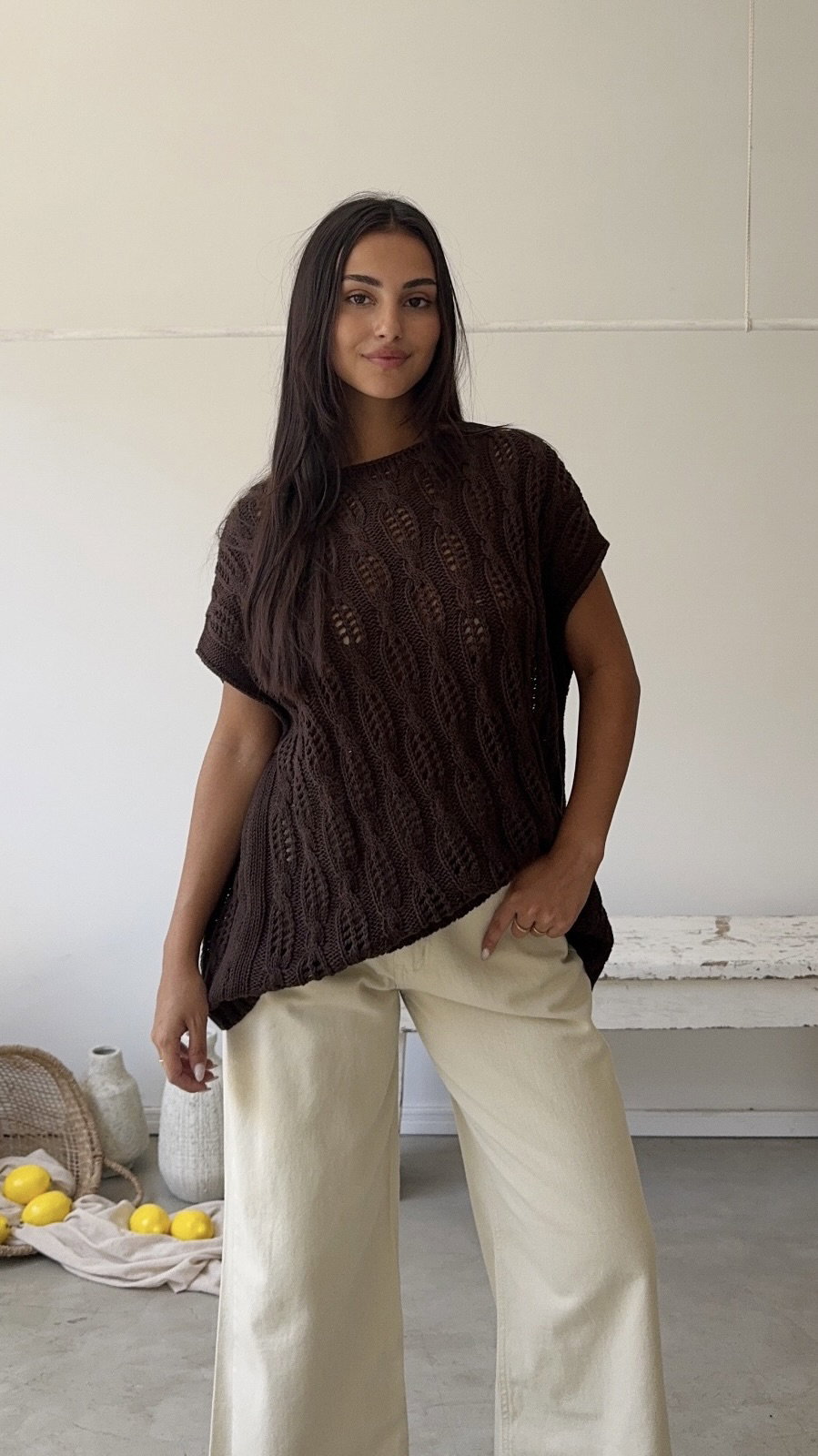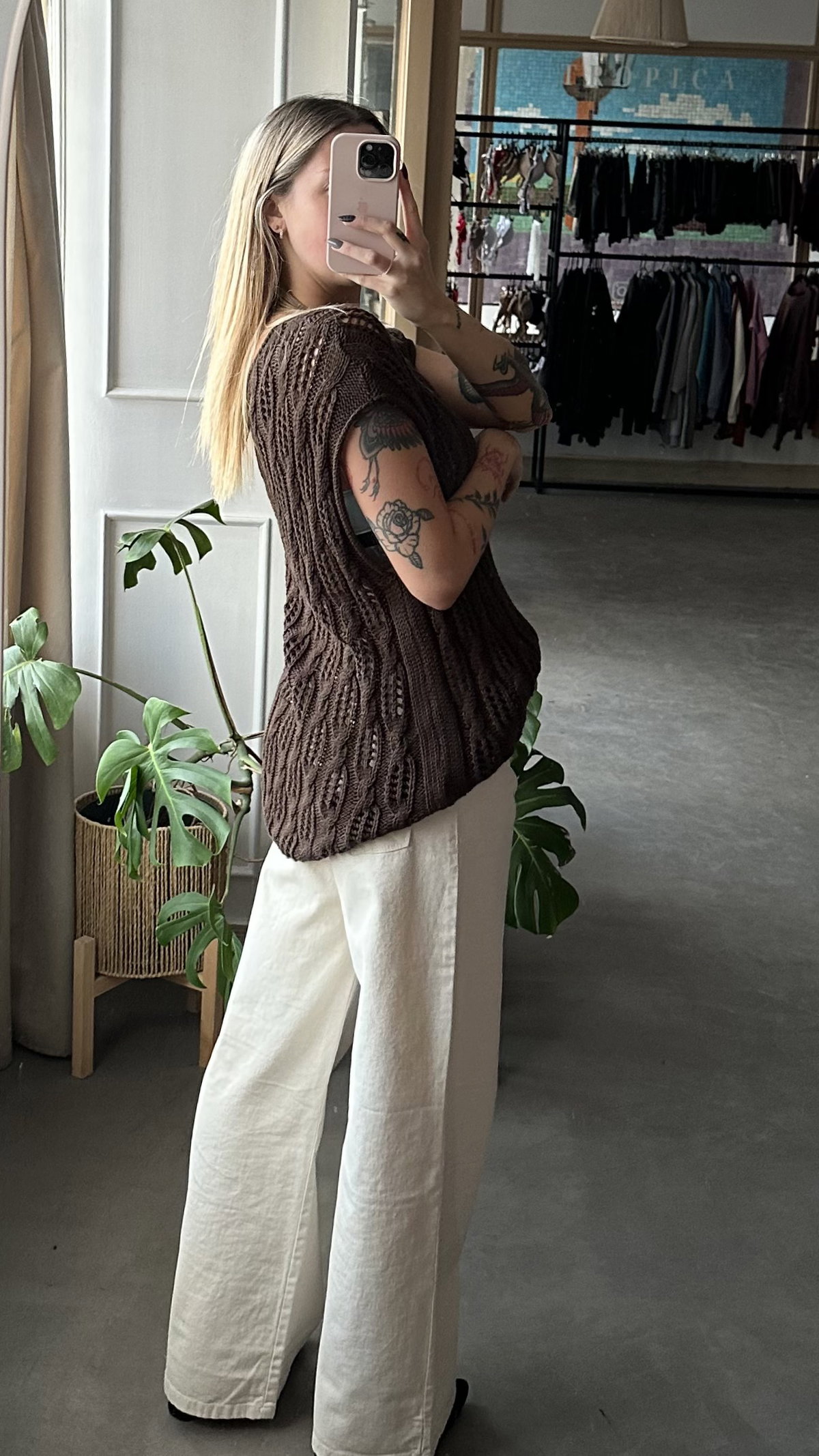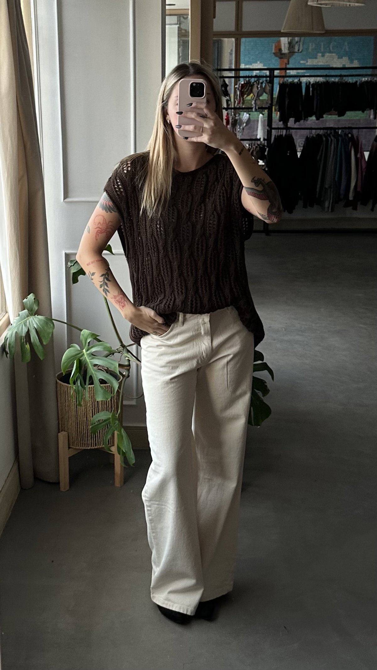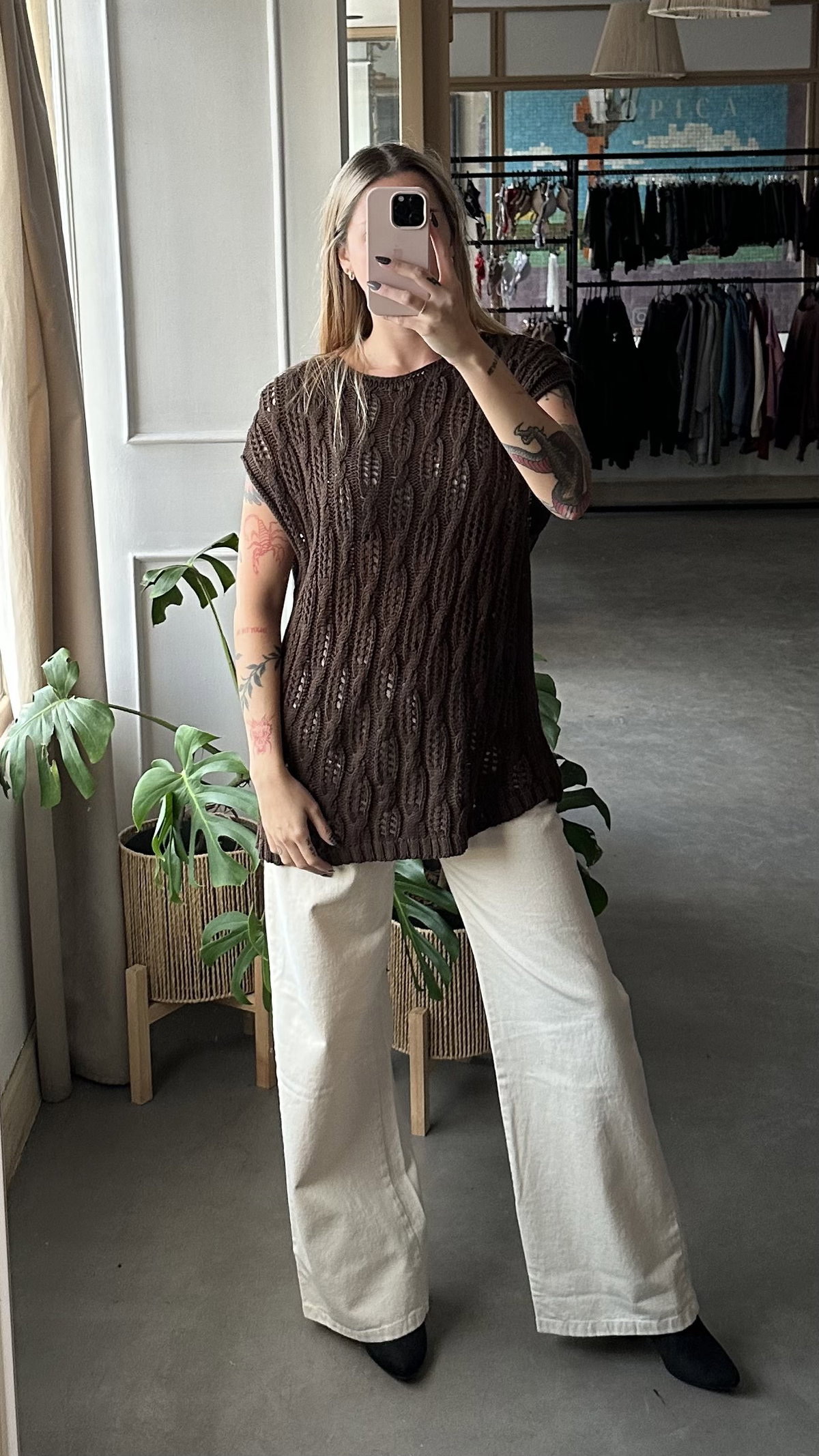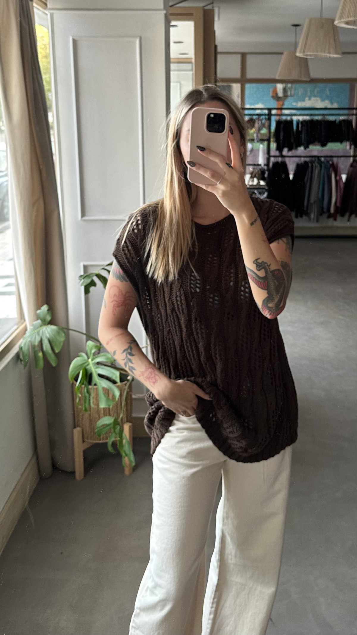 Chaleco de hilo acrilico grueso, caladito. modelo over, largo aproximadamente a la cadera. talle unico, se adapta a un L/XL. es elastizado.