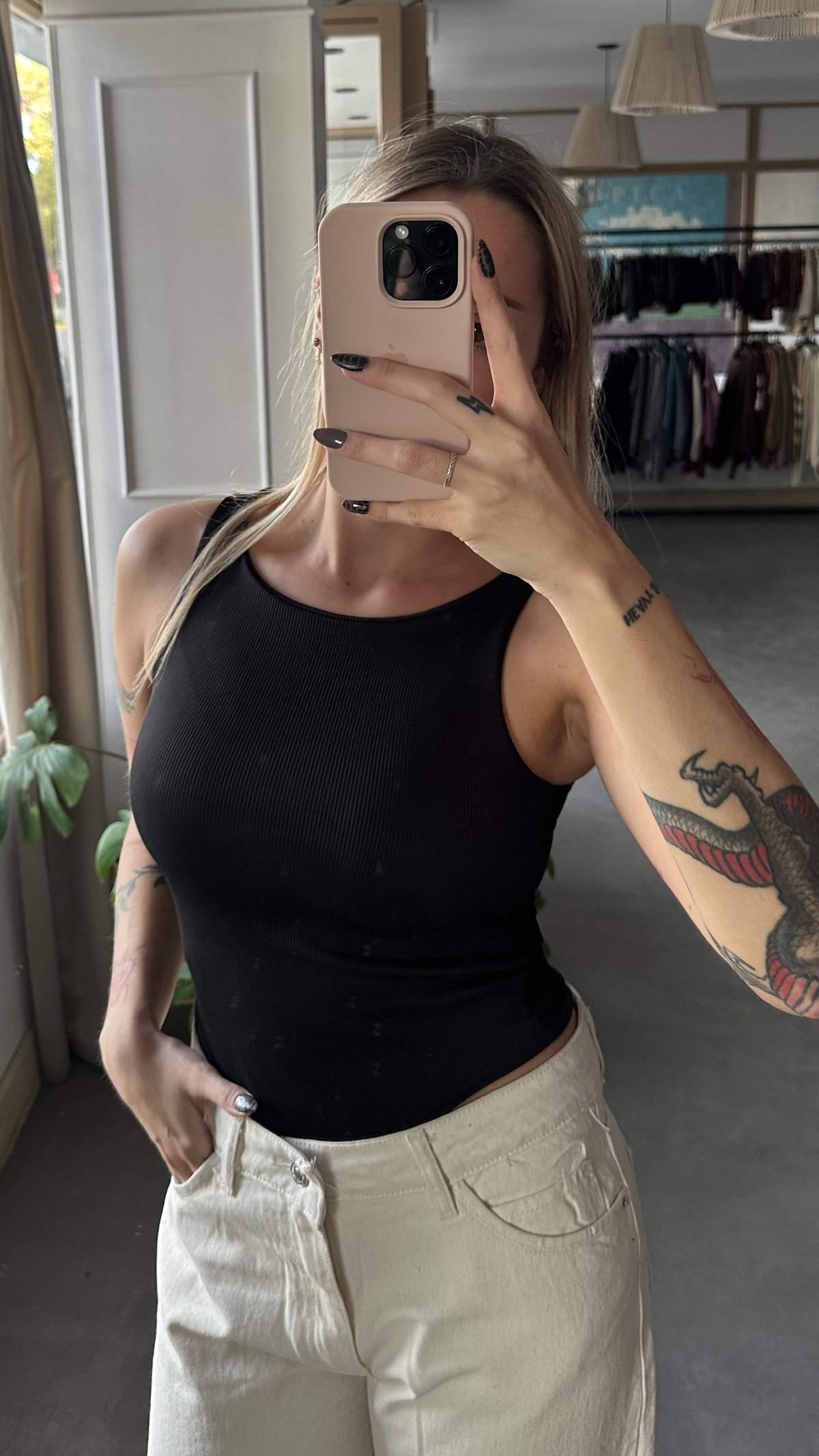 Body de morley con escote forrado, es elastizado y tiene ganchitos. talle unico, va para