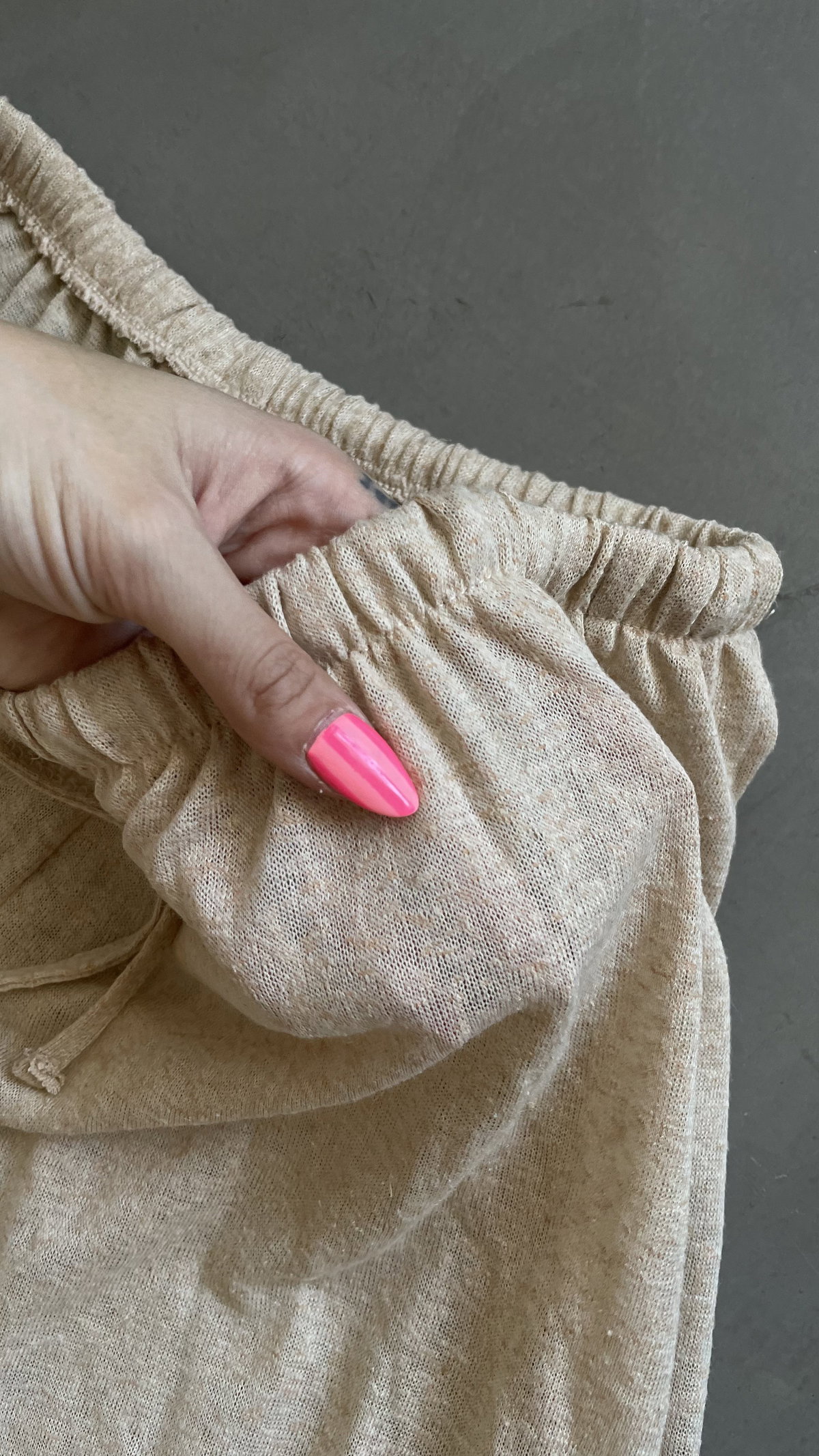 pantalon con puño, de lanilla liviana, es medio traslucila. tiro alto.