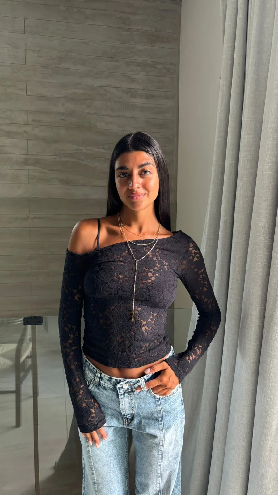 top de encaje, corte irregular. elastizado, talle unico aprox