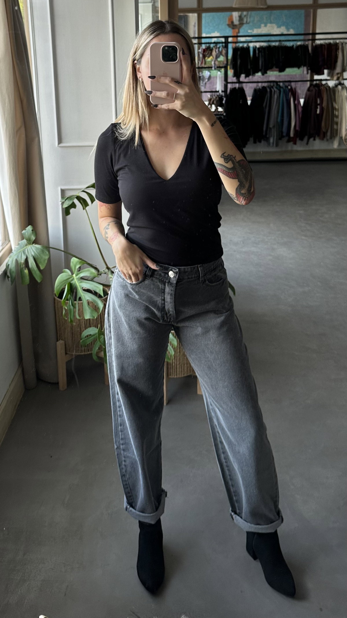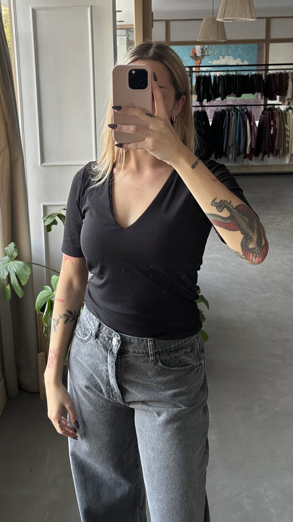 Remera manga corta de morley forrada, con estote en V. elastizada. manga 3/4. largo arriba de la cadera