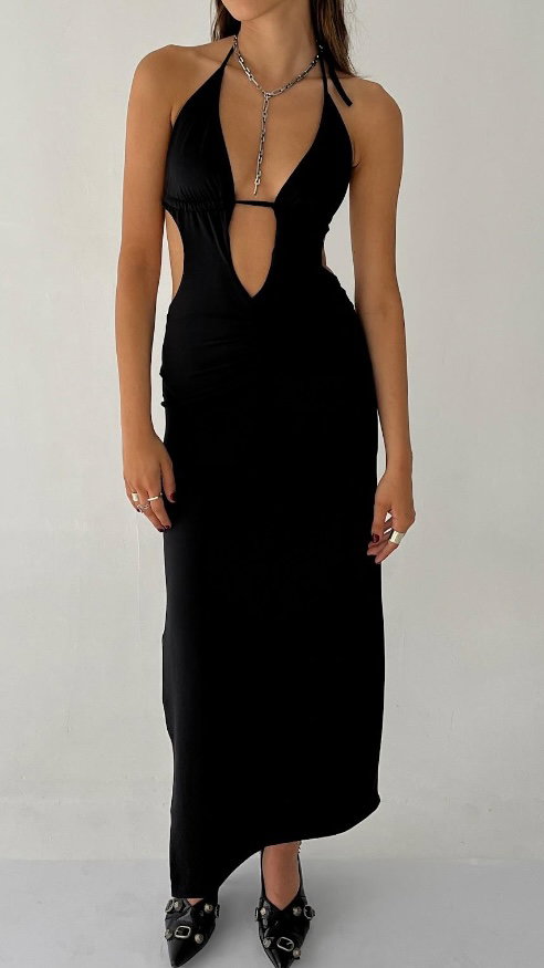 vestido largo de microfibra, con recortes.. es talle unico va para un