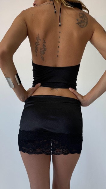 Top de microfibra combinado con encaje, espalda descubierta. talle unico chico, aprox