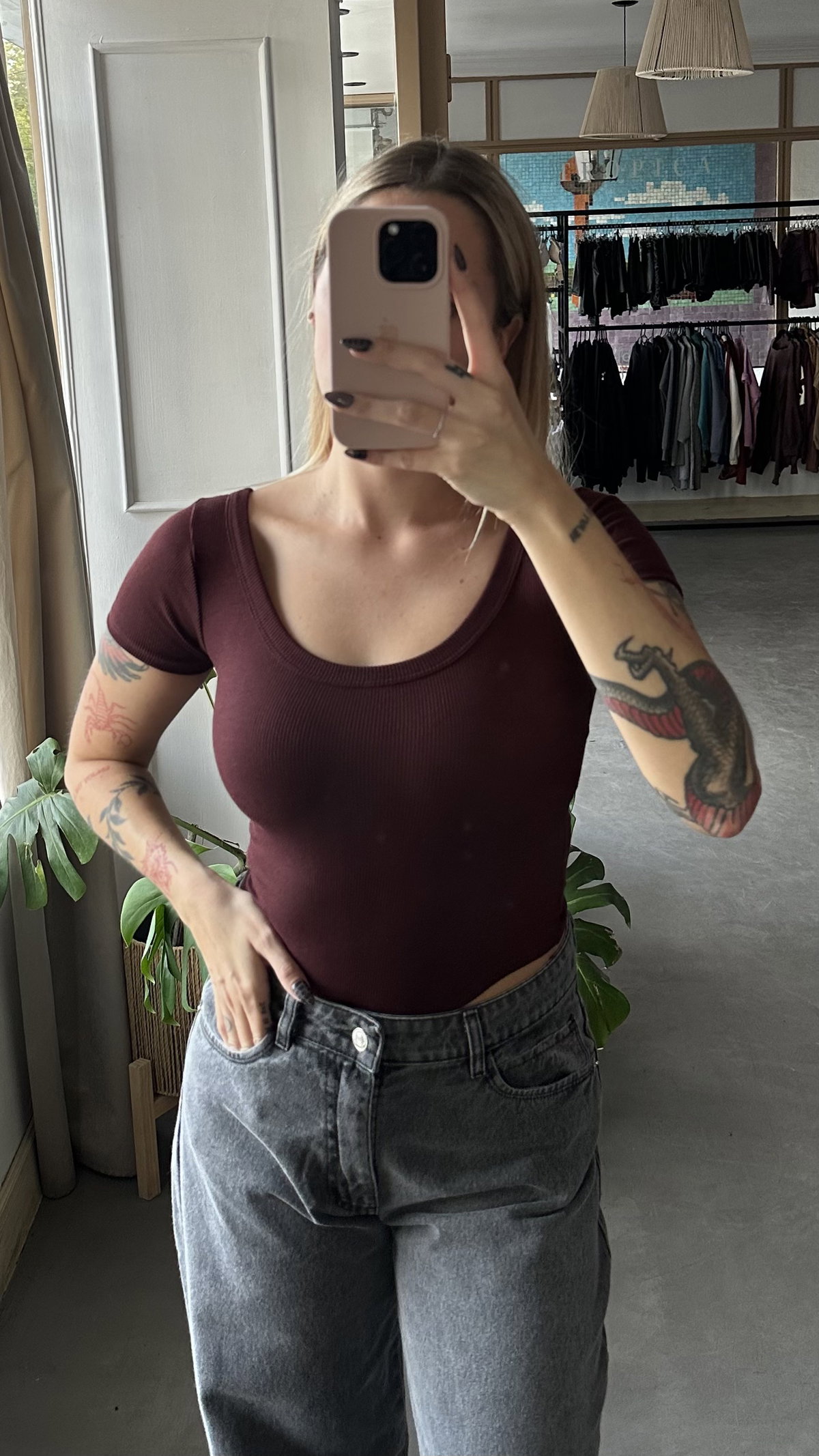 Body de morley manga corta, con escote en U. trae ganchitos. talle unico, va para