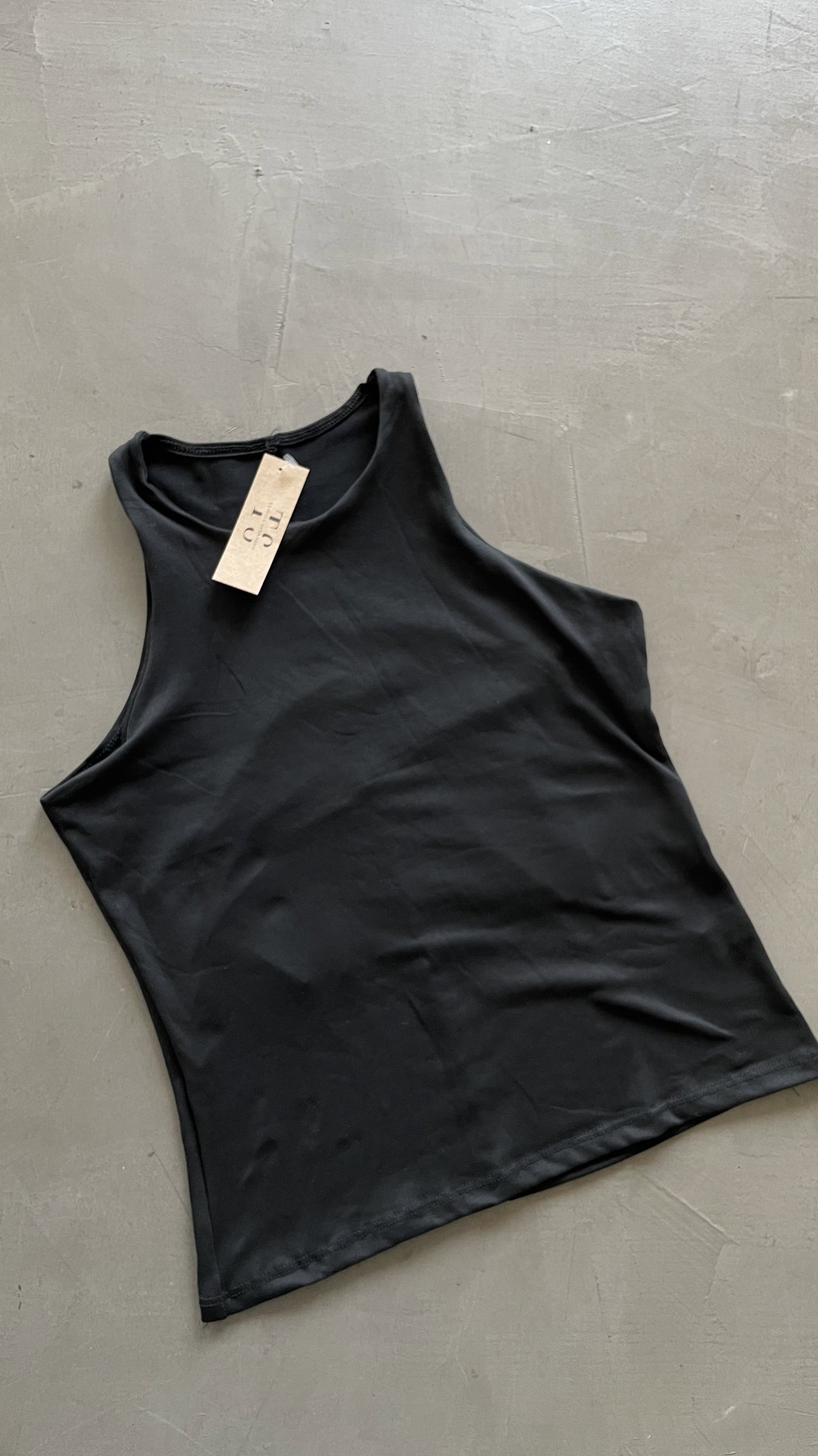 Musculosa de modal soft, forrada. largo arriba de la cadera aprox, es elastizado.