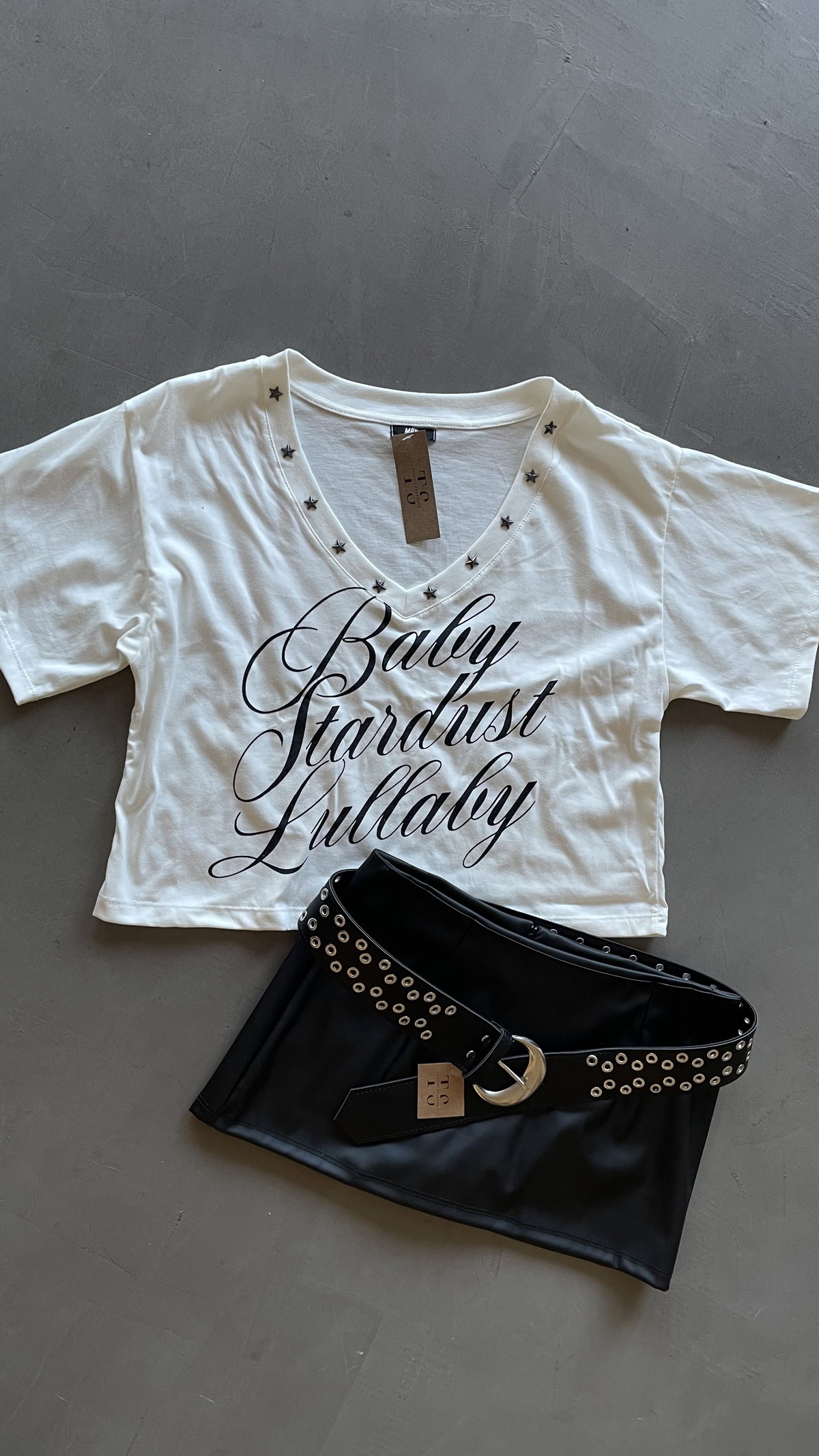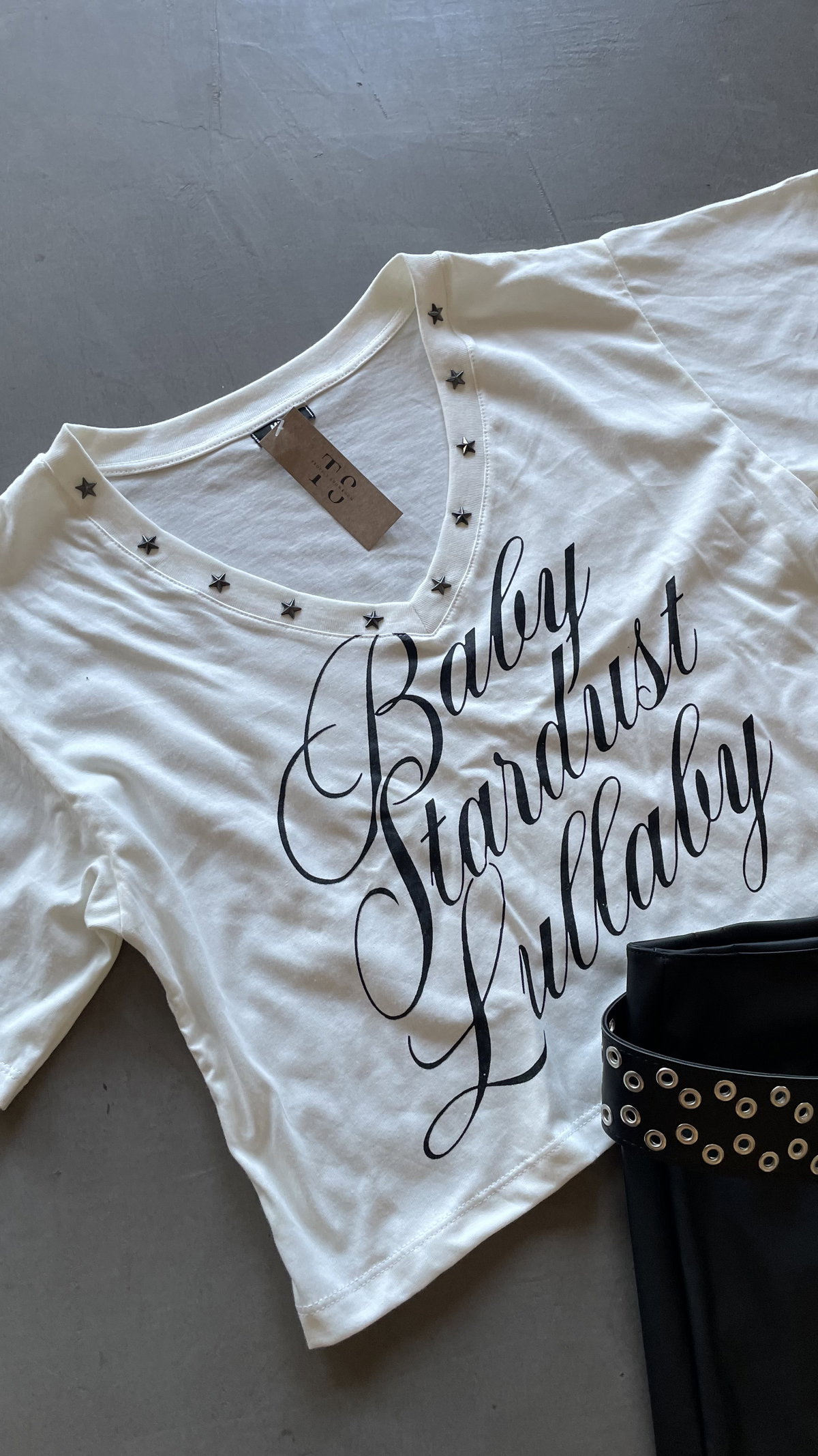 Remera estampada de jersey de algodon. talle unico amplio, se adapta hasta un L.