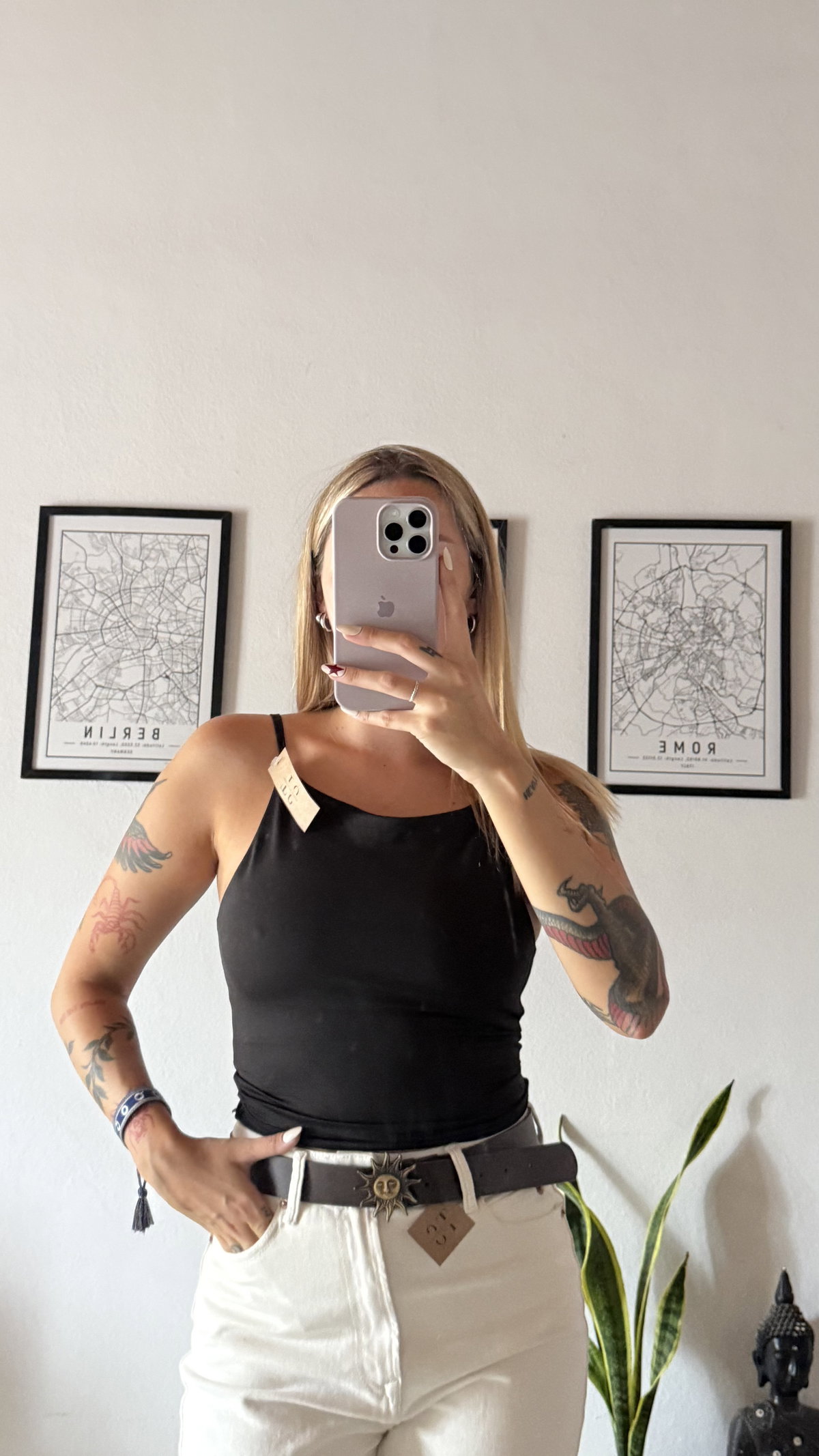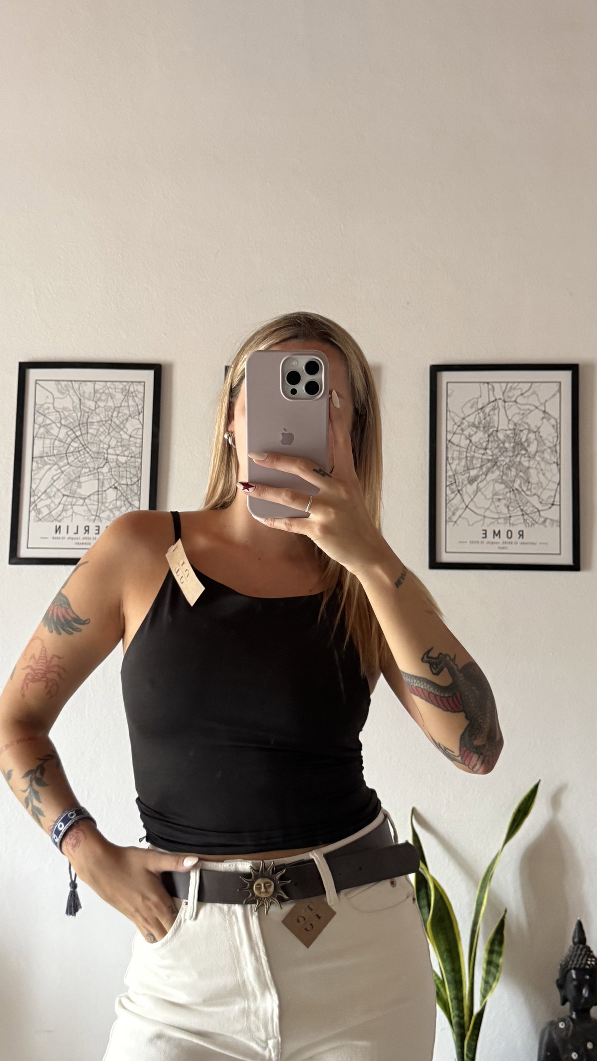 musculosa de microfibra, forrada. larga a la cintura aprox, es elastizada.