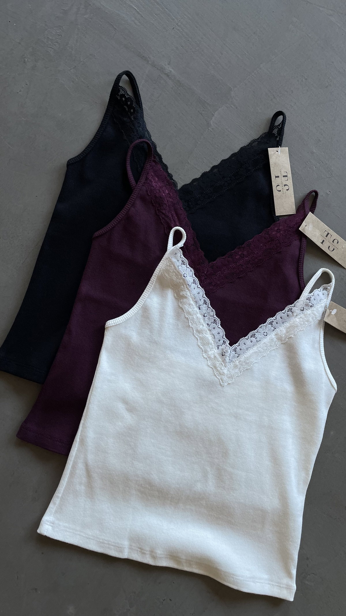 top de morley, con escote en V y puntilla. corto a la cintura aprox, es elastizado. los talles vienen justos.