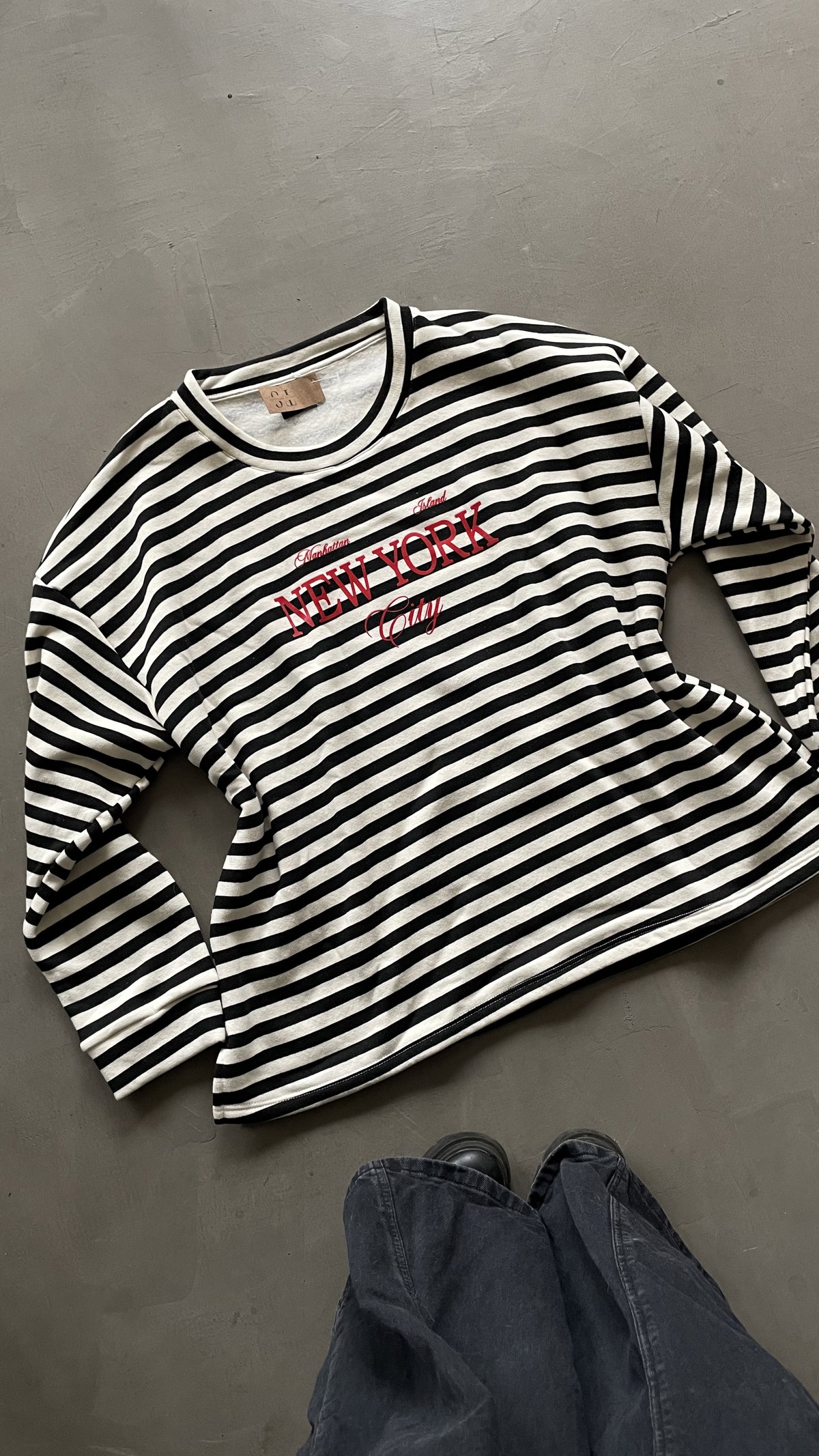 Buzo rayado de algodon frizado. con estampa en el frente, es largo a la cadera, talle super amplio.